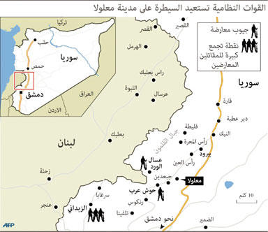 قوات الأسد تسيطر على معلولا وتحشد لاقتحام حمص