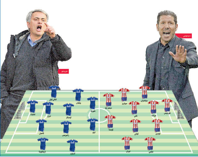 وهذه رابع مرة يتأهل فيها اتلتيكو مدريد الى نصف النهائي والاولى منذ 1974، عندما تغلب على سلتيك الاسكتلندي وخسر النهائي الوحيد المعاد امام بايرن ميونيخ الالماني حامل لقب العام الماضي والذي يلاقي ممثل العاصمة الاول ريال مدريد في مباراة نصف النهائي الثانية.ويدخل اتلتيكو مدريد مباراته امام تشلسي منتشيا بفوزه على ضيفه التشي 2-صفر يوم الجمعة الماضي في الدوري المحلي حيث يواصل زحفه نحو اللقب الاول منذ 1996 عندما حقق الثنائية (الدوري والكأس المحليان).ويبتعد اتلتيكو مدريد بفارق 4 نقاط عن برشلونة حامل اللقب قبل 4 مراحل من نهاية الموسم وبفارق 6 نقاط عن ريال مدريد الذي يملك مباراة مؤجلة.أتلتيكو بلا خسائرويعول فريق العاصمة الاسبانية الوحيد غير المتوج بين الرباعي المتبقي في المسابقة القارية العريقة، على سجله الرائع هذا الموسم كونه الفريق الوحيد الذي لم يتجرع طعم الخسارة حتى الآن، وأزاح في طريقه الى دور الاربعة فريقين عريقين هما ميلان الايطالي صاحب المركز الثاني في عدد الالقاب في المسابقة (7) في ثمن النهائي، وبرشلونة، المتوج بأربعة القاب، في نصف النهائي.ويملك اتلتيكو مدريد من الأسلحة ما يرجح كفته للخروج فائزا اقله في مباراة الذهاب وفي مقدمتها هدافه البرازيلي الاصل دييغو كوستا (7 اهداف هذا الموسم في المسابقة، والهداف التاريخي للمنتخب الاسباني دافيد فيا وصانع الالعاب البرازيلي دييغو ريباس ومواطنه جواو ميراندا وكوكي والاوروغوياني كريستيان رودريغيز بالاضافة الى التركي اردا توران الذي يعود الى المنافسة بعد غيابه عنها منذ ذهاب ربع النهائي امام برشلونة بسبب الاصابة. وما يزيد حظوظ اتلتيكو مدريد انه لم يخسر على ارضه امام اي فريق انكليزي في المسابقة، كما انه حسم المباراة الاخيرة بينه وبين الفريق اللندني في صالحه وبرباعية نظيفة في الكأس السوبر الاوروبية عام 2012 بينها ثلاثية لنجمه الكولمبي السابق راداميل فالكاو غارسيا المنتقل الى موناكو الفرنسي مطلع الموسم الحالي.والتقى الفريقان في دور المجموعات عام 2009 وفاز الفريق اللندني برباعية نظيفة على ملعب ستامفورد بريدج، وتعادل الفريقان 2-2 ايابا في مدريد.المهمة صعبة لتشلسيفي المقابل، سيحاول تشلسي بطل العام قبل الماضي الخروج بأقل الخسائر في مباراة الذهاب وهو يدرك ان مهمته لن تكون سهلة امام الفريق المدريدي في ظل الشكوك التي تحوم حول مشاركة نجمه البلجيكي ادين هازار الذي تعرض للاصابة في ربلة الساق في اياب الدور ربع النهائي امام باريس سان جرمان الفرنسي، وغياب مدافعه الصربي برانيسلاف ايفانوفيتش بسبب الايقاف.ويعود مدرب تشلسي، البرتغالي جوزيه مورينيو الى ملعب فيسنتي كالديرون للمرة الاولى منذ عام تقريبا، علما بانه يملك افضلية في مواجهته لفريق العاصمة حيث حقق الفوز عليه 3 مرات في 4 مباريات مع ريال مدريد مقابل خسارة واحدة كانت في نهائي الكأس وهي المباراة الاخيرة لمورينيو امام الروخيبلانكوس وبالتالي سيسعى الى الثأر منه وبلوغ النهائي الثاني في مدى عامين والثالث في الاعوام السبع الاخيرة (خسر نهائي 2008 امام مواطنه مانشستر يونايتد).وقلب تشلسي تأخره ذهابا امام باريس سان جرمان 1-3 في ربع النهائي الى فوز عزيز ايابا 2-صفر، وهو يمني النفس بمواصلة مشواره في المسابقة خاصة بعد تضاؤل حظوظه في المنافسة على لقب البريمر ليغ بخسارته امام سندرلاند وتخلفه بفارق 5 نقاط خلف ليفربول المتصدر.بدوره يملك تشلسي الذي يخوض نصف النهائي للمرة السابعة في المواسم الـ11 الاخيرة، الاسلحة اللازمة لمواصلة المشوار القاري في مقدمتها البرازيليون اوسكار وراميريز سانتوس وويليان ودافيد لويز والكاميروني صامويل ايتو وفرانك لامبارد وجون تيري وغاري كاهيل والالماني تندري شورله والسنغالي ديمبا با والاسباني فرناندو توريس الذي سيعود الى فيسنتي كالديرون للمرة الاولى منذ تركه نادي العاصمة للانتقال الى ليفربول الانكليزي عام 2007.(أ ف ب)