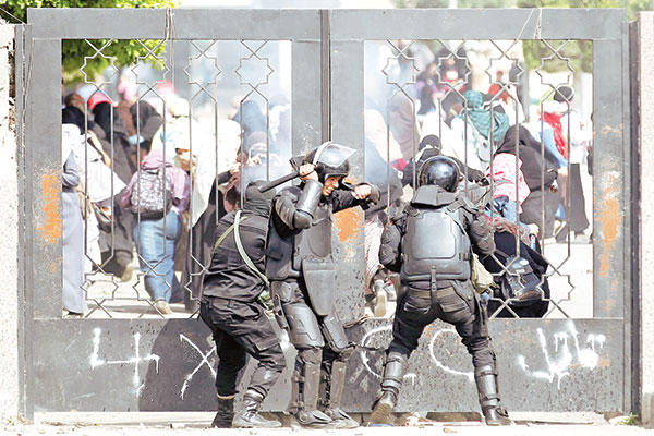 حاولت جماعة "الإخوان" إشعال موجة عنف في مصر أمس، بعدما خرج طلاب الجامعات في تظاهرات عدة، استجابة لدعوة "تحالف دعم الشرعية"، لإحياء ذكرى "غزوة الصناديق"، ما أدى إلى اقتحام قوات الشرطة، وإطلاق الغازات المسيلة للدموع داخل عدد من المقار الجامعية، بينها جامعة الأزهر، والإسكندرية، وعين شمس، وأسيوط، بينما رفعت أعلام تنظيم "القاعدة"، في جامعة القاهرة قلعة التعليم المدني في العالم العربي.واختارت جماعة "الإخوان"، اسم "الشارع لنا"، عنواناً لفعالياتها الممتدة حتى الأول من الشهر المقبل، إحياء لذكرى استفتاء 19 مارس 2011، والمعروف إعلامياً بـ"غزوة الصناديق"، والذي كشف مبكراً أطماع الإسلاميين في الحكم، عقب ثورة "25 يناير".من جانبه، كشف مصدر إخواني لـ"الجريدة" نية تحالف دعم الشرعية التصعيد غداً، رداً على مداهمة الأمن لمقر "تحالف الشرعية"، أمس الأول، مشيراً إلى استقرار قيادات "الإخوان" خلال اجتماع لهم في إسطنبول التركية على ما سماه "التحرك الأكبر" عقب صلاة الجمعة، الذي قد يشمل التوجه إلى ميدان كبير بالقاهرة.مقتل ضابطينوفي مواجهة هي الأولى على الأطراف الشمالية للعاصمة المصرية، شنَّت قوات الشرطة أمس، بمعاونة خبراء مفرقعات من سلاح المهندسين، حملة أمنية على بؤرة إرهابية، تتبع تنظيم "أنصار بيت المقدس"، في قرية "عرب شركس" بمحافظة القليوبية، ما أسفر عن مقتل ضابطين من سلاح المهندسين في الجيش وخمسة من "العناصر الإرهابية".وأشارت مصادر إلى أن المجموعة المسلحة التي تمت مداهمتها ضالعة في الهجوم الذي استهدف، السبت الماضي، كميناً للشرطة العسكرية في مسطرد، شهد مقتل 6 جنود، وأسفرت العملية عن ضبط أسلحة و25 برميل متفجرات. أحكامقضائياً، قضت محكمة جنايات القاهرة أمس غيابياً بالإعدام شنقاً على 26 جهادياً، لاتهامهم بقيادة خلية إرهابية للإضرار بالمجرى الملاحي لقناة السويس والمعروفة إعلامياً بـ"خلية السويس"، بينما عاقبت المحكمة المتهم الـ27 بالسجن المشدد 15 عاماً.وبينما باشرت النيابة التحقيق مع أحد أبرز الجماعات التكفيرية في الجيزة، ويدعى محمد حسن، وأمرت بحبسه 15 يوماً، إثر اتهامه بإثارة الشغب والعنف، أمرت نيابة القاهرة بتجديد حبس 17 متهماً، من المنتمين إلى تنظيم "الإخوان"، 15 يوماً، على ذمة اتهامات بالتجمهر دون إخطار.في سياق منفصل، بدأت أمس محكمة جنايات القاهرة نظر ثاني جلسات محاكمة الرئيس الأسبق، حسني مبارك ونجليه علاء وجمال وآخرين في قضية اتهامهم بالاستيلاء على أكثر من مئة مليون جنيه من المخصصات المالية للقصور الرئاسية.خلاف الأباتشيوفي مؤشر على استمرار التوتر في العلاقات بين القاهرة وواشنطن، قال وزير الخارجية المصري نبيل فهمي، إن القوات المسلحة أرسلت عدداً من طائرات "الأباتشي" المقاتلة إلى الولايات المتحدة للصيانة، لكنها لم تعد حتى الآن، موضحاً في تصريحات إعلامية، أنه تواصل مع وزير الخارجية الأميركي جون كيري، لمناقشة العلاقات الثنائية بين البلدين، فضلاً عن تطورات الأوضاع الداخلية والخارجية.ويأتي رفض واشنطن إعادة طائرات إلى مصر، على خلفية قرار أميركي سابق بتجميد المساعدات العسكرية عقب ثورة يونيو التي أطاحت الرئيس الإخواني محمد مرسي، حيث أكد الخبير الاستراتيجي، اللواء طلعت مسلم، أن الموقف الأميركي الأخير، يكشف عن دخول العلاقات المصرية- الأميركية نفقاً مظلماً، حيث تمارس إدارة الرئيس الأميركي باراك أوباما ضغوطها على القاهرة للسماح بعودة "الإخوان" إلى المشهد السياسي، مشدداً على أن الطائرات المصرية التي ذهبت إلى أميركا للصيانة لا تدخل ضمن تعليق أميركا لصفقة تسليح الجيش المصري.
