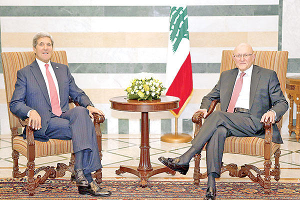 انشغل لبنان أمس بزيارة وزير الخارجية الأميركي جون كيري الذي وصل إلى بيروت في زيارة خاطفة تحمل دلالات سياسية وسط شغور موقع الرئاسة الموقع المسيحي الأول في الدولة. والتقى كيري، الذي أُحيطت زيارته بإجراءات أمنية مشددة، رئيس الحكومة الائتلافية التي يشارك فيها "حزب الله" تمام سلام وجدد دعم بلاده للبنان، داعياً الى انتخاب رئيس جديد للجمهورية في أسرع وقت.وأعلن كيري في مؤتمر صحافي إثر انتهاء محادثاته مع سلام في السراي الكبير، أن "الولايات المتحدة ملتزمة جداً بأمن لبنان واستقراره وسيادته، وبدعم الشعب اللبناني"، وقال: "يجب حل مشاكل العالم والمنطقة كي نتمكن أن نستمتع في بيروت ولبنان، فلبنان دولة مهمة بالنسبة لأمن المنطقة".