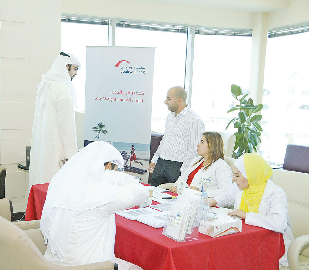 انطلاقاً من أهدافه في رفع مستوى التوعية بأهمية الحفاظ على الصحة واهمية ممارسة الرياضة، أعلن بنك بوبيان إطلاق حملة «خفف واربح الذهب» بالتعاون مع مجموعة لوفات للاغذية الصحية بين موظفي البنك تهدف إلى التشجيع على ممارسة الرياضة والمشي بهدف تخفيف الوزن والوصول إلى الوزن المثالي والتي سيتم مكافأة الفائزين فيها بسبائك ذهبية توازي حجم ما انجزوه من خسارة الوزن. وقامت إدارة الاتصالات والعلاقات المؤسسية بقياس أوزان المشاركين على مدار يومين بحضور أخصائيين من مجموعة «لوفات» للأغذية الصحية والذين قدموا مجموعة مفيدة من النصائح الصحية للموظفين المشاركين وذلك حرصا منها على مشاركة اكبر عدد ممكن من الموظفين لخلق أجواء تنافسية تساهم في الحفاظ على صحتهم.
