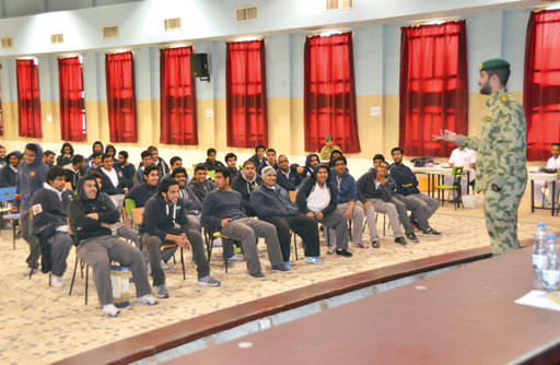 ودعا الطلبة الى الاجتهاد في تحصيل العلم لتحقيق الطموحات الشخصية وخدمة الوطن.وشملت المحاضرة تدريبا عمليا ومعلومات قيمة عن الاسعافات الأولية من قبل مديرية الخدمات الطبية في الحرس الوطني، كما تم توزيع بروشور يبين شروط ومتطلبات الانتساب للحرس الوطني وتفاصيل عملية التسجيل.وفي ختام المحاضرة توجه مدير المدرسة جاسم الطراروة بالشكر والتقدير الى وفد الحرس الوطني على الجهود التوعوية التي يقدمها لطلبة الكويت والتي من شأنها تعزيز روح الولاء والانتماء لوطننا الغالي، وأهدى الوفد شهادات التقدير.