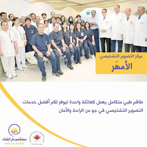تهدف حملة مستشفى دار الشفاء «الأحدث والأدق والأمهر والأسرع» إلى التعريف بالإمكانات والخدمات المتطورة التي يقدمها المركز من خلال أحدث الأجهزة العالية الجودة التي تقدم نتائج دقيقة جدا. وتساعد هذه الأجهزة الطبيب المختص على تشخيص حالة المريض بأدق تفاصيلها، وذلك من خلال طاقم طبي من ذوي الخبرة على درجة عالية من الكفاءة يوفر خدمات التصوير للمرضى في جو من الراحة والأمان والسرعة بدون موعد وبدون فترات انتظار طويلة، حيث يتمكن المريض من إجراء فحوصاته وتسلمها في اليوم نفسه.ولأن وقت المرضى يهم المركز، يوفر مركز التصوير التشخيصي بالمستشفى تقنية جديدة تسمى Vue Beyond، وهي شاشة تعرض احصاءات لعدد المرضى الخاضعين للفحص وعدد المرضى على قائمة الانتظار ومدة الانتظار والتقارير الطبية وغيرها، والتي تمكن الطاقم الطبي من تقديم خدمة أفضل وأسرع وتنظيم مسار العمل وتقليل أوقات الانتظار بالنسبة للمرضى، وإضافة إلى ذلك أصبح باستطاعة المريض الاطلاع على نتيجة فحوصاته في أي مكان.سرية في التعامل وفي هذا الصدد، صرح د. محمد اسماعيل رئيس مركز التصوير التشخيصي في مستشفى دار الشفاء، قائلاً: «تتوفر ميزة خاصة ومفيدة جدا للمرضى الخاضعين لجميع فحوصات الأشعة في دار الشفاء، فكل مريض يحصل على حساب خاص في موقع إلكتروني عالي الأمان، ويدخل إليه عبر كلمه سرية ويطلع على نتائج فحوصاته أو يرسلها إلى أي شخص في العالم. وتوفير هذه الخدمة للمرضى سهّل عليهم الاطلاع على نتائج فحوصاتهم والحصول على استشارات طبيه عالمية».يذكر أن مركز التصوير التشخيصي في مستشفى دار الشفاء حاصل على شهادة اعتماد الكلية الأميركية للأشعة (ACR) لخدمات الأشعة المقطعية، وهي الشهادة التي تمنح فقط لأقسام الأشعة التي توفر أجهزة آمنة تتميز بجودة التصوير مع انخفاض الجرعة الإشعاعية بالإضافة إلى دقة التقارير الطبية، وذلك لتصوير جميع مناطق الجسم وبينها القلب والصدر والرأس والرقبة للبالغين والأطفال. وهي مثالية لتصوير الأطفال وآمنة وسريعة.الرنين المغناطيسيوبدوره، قال د. محمد إسماعيل: «مركز التصوير التشخيصي بمستشفى دار الشفاء يعد رابع مركز أشعة خارج الولايات المتحدة الأميركية يحصل على هذه الشهادة، وهذا يتماشى مع استراتيجية المستشفى لتوفير أفضل الخدمات وأعلى معدل أمان للمريض».ولأن القسم يسعى دوما لتوفير آخر ما توصلت إليه التكنولوجيا حول العالم في مجال الأشعة، فقد تم استقدام جهاز «3T MRI Skyra للتصوير بالرنين المغناطيسي الذي يعتبر أول جهاز ذي مجال مغناطيسي عالي الدقة في القطاع الخاص والذي يستخدم لتشخيص حالات السكتة الدماغية، وأمراض القلب، والصرع، ومرض باركنسون، وتصوير الأعصاب الوظيفي، وتقديم صور توضيحية وإرشادية للمخ قبل الجراحة، والذي يوفر للأطباء السريريين صورا أكثر كفاءة للأعصاب، والقلب، والعظام، والعضلات، وغيرها من الحالات.