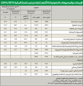 قال تقرير «الوطني» إن فائض الميزانية بلغ 10.7 مليارات دينار خلال النصف الأول من السنة المالية 2013-2014، والذي يشكل تقريبا خمس الناتج المحلي الإجمالي المتوقع لعام 2013.