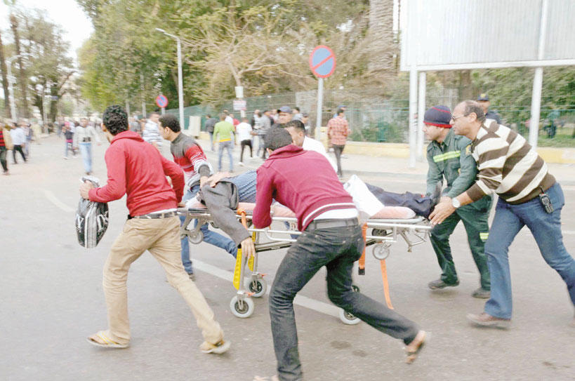 شهدت مصر أمس موجة جديدة من التفجيرات الإرهابية استهدفت قوات الأمن في محيط جامعة القاهرة الواقعة في محافظة الجيزة، ما أسفر عن مقتل رئيس مباحث قطاع غرب الجيزة الذي يحمل رتبة عميد، وإصابة 8 بينهم مدني واحد.وأكد مصدر أمني لـ"الجريدة" قيام مجهولين بوضع عبوتين ناسفتين بجوار إحدى الأشجار في الناحية المقابلة للباب الرئيسي للجامعة، بينما تم تعليق عبوة ثالثة على إحدى الأشجار المواجهة للبوابة الرئيسية، مرجحاً أن تكون العبوات المستخدمة عبارة عن قنابل "سي فور" صغيرة الحجم، لا تحدث لهباً أو ينتج عنها حرائق، مملوءة بالشظايا، يتم تفجيرها عن بعد باستخدام الهواتف المحمولة.
