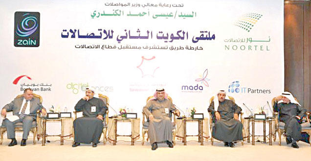 واوضح أن التحديات كبيرة والامال عريضة، لذا فقد بدأت وزارة المواصلات مشاريع البنية التحتية الكبرى منذ عدة سنوات، الامر الذي من شأنه ان يساعد على تغيير الواقع الحالي، والانتقال إلى الجيل الرابع كلياً في كافة قطاعات الاعمال، وإتاحة هذا التطور وإيصاله الى الجميع، لما لذلك من انعكاسات على الجانب التنموي والاقتصادي والانتاجي.ومضى الكندري يقول ان كافة الدراسات الاقتصادية والتنموية تؤكد اهمية إيلاء صناعة الاتصالات وتكنولوجيا المعلومات الاهمية الكبرى، ومنحها الدور الفاعل للمساهمة في تحقيق أهداف التنمية، مؤكداً أن هذا الامر بات نصب أعين الوزارة ويحظى باهتمام كبير من جانبها، ومتابعة من أعلى المستويات، وليس أدل على ذلك من الجهود المبذولة حيال تطوير القطاع والسعي إلى تنظيمه.قفزة نوعيةولفت الكندري إلى ان قطاع الاتصالات شهد قفزة نوعية وإجرائية، بعد ان تم تنظيم الترددات بين شركات الاتصالات المتنقلة بعدالة تامة، وتنظيم سوق تراخيص الانترنت والذي يعد الرديف الاهم للاتصالات المتنقلة، كما عملت الوزارة على تنظيم الاسعار والكلفة على المستهلكين سواء لخدمات الانترنت أو الاتصالات الدولية، بالإضافة إلى ربط شبكة وزارة المواصلات الدولية بعدد من الكوابل الدولية البرية والبحرية مع الدول المجاورة، الامر الذي سيساعد على تثبيت واستقرار حركة الاتصالات والانترنت.ووعد الكندري من هذا المنطلق بالسعي نحو تحقيق النطق السامي لسمو أمير البلاد الشيخ صباح الاحمد الجابر الصباح، على أرض الواقع وتحويل دولة الكويت إلى مركز مالي واقتصادي عالمي، وتحديث قطاع اتصالات وبنية تحتية قادرة على احتضان كبريات الشركات العالمية.وأشار إلى أن وزارة المواصلات تتطلع الى أن يساهم ملتقى الكويت للاتصالات من خلال ما سيقدمه من توصيات واستنتاجات تصب في تطور قطاع الاتصالات وتكنولوجيا المعلومات بصفة خاصة، ودولة الكويت بصفة عامة، وذلك لإيمانها الراسخ بأن التكنولوجيا المتطورة هي الطريق إلى التحديث في جميع المجالات الادارية والتعليمية والصحية والاقتصادية، مشيرا إلى أن هذا الامر يعد بمثابة التزام نحو الكويت واهلها قبل أن يكون خطة عمل تسترشد بها الوزارة.وأعرب الكندري عن أمله في أن يساهم الملتقى في وضع تصور شامل لتطوير القطاع ليتبوأ مكانة عالية تخدم اقتصاد الكويت، وأن يخرج بالتصورات المناسبة التي ستكون محل اهتمام وأن توضع على طاولة البحث والتنفيذ.تغيرات سريعةوخلال الجلسة الاولى التي ترأسها الرئيس التنفيذي السابق لشركة فيفا للاتصالات المهندس نجيب العوضي، قال رئيس مجلس الادارة العضو المنتدب في شركة نور للاتصالات المهندس أيمن البناو ان العالم يشهد تغيراً سريعاً في عالم الاتصالات، حتى أصبحنا نسمع مؤخراً مصطلحات جديدة منها TMT وDigita Media، وغيرها من المصطلحات التكنولوجية.وأضاف البناو أن الكويت التي تواكب هذا التغير المتسارع قادرة على أن تحقق سبقاً في هذا المجال من خلال التحول إلى "العاصمة الرقمية"، خاصة إذا ما عرفنا أن التغيير يساعد على خلق فرص جيدة من بينها أن تكون الكويت عاصمة رقمية في المنطقة، بمعنى أن يكون الناتج القومي من دخل الخدمات الرقمية الاعلى بعد النفط، مشيراً إلى أن ذلك يتحقق من خلال عدد من الامور أولها أن تكون الكويت مركزاً إقليمياً للاتصالات، وأن تكون رائدة في مجال الوسائط الرقمية، ورائدة في مجال تكنولوجيا المعلومات.وأكد البناو أن الكويت تمتلك كافة المقومات التي تساعدها على تحقيق ذلك، خاصة إذا ما عرفنا أنها تتمتع بموقع جغرافي مميز، والنسبة العالية في استخدام الهواتف الذكية، لافتاً إلى أن ذلك يتطلب بالأساس وضع خارطة طريق واستراتيجية متكاملة وخطط بمشاركة القطاعين الحكومي والخاص، على أن تتضمن هذه الخطط توصيل أكبر عدد من كابلات الألياف الضوئية للكويت، وإنشاء عدد من مراكز البيانات بمواصفات عالمية، وإطلاق قمر صناعي كويتي، إلى جانب مبادرة لتوفير وتحفيز استخدام الانترنت فائق السرعة.وحول الد