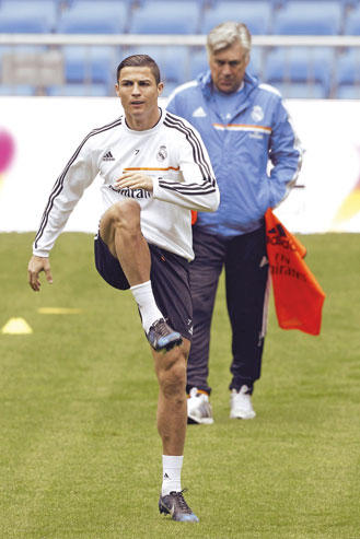 تسير جميع الأمور نحو المسار الصحيح داخل ملعب سانتياغو برنابيو، منذ أن تلقى الفريق الملكي الخسارة أمام برشلونة 1-2 قبل أسبوعين، وذلك بفضل أهداف رونالدو والنجم الجديد غاريث بيل الذي استعاد أخيرا جاهزيته وأكد قدرته على اللعب مع الفريق.وفي الوقت الذي عاد فيه نجم وسط الملعب المخضرم تشابي ألونسو إلى الفريق مجددا بعدما ابتعد عن الملاعب فترة طويلة امتدت قرابة الخمسة أشهر بسبب الإصابة، ذكر تقرير إخباري امس أن المهاجم البرتغالي كريستيانو رونالدو قد يغيب عن اللقاء. وأشارت صحيفة "أس" الإسبانية، على موقعها الإلكتروني، إلى أن كريستيانو سيخضع لفحوصات طبية، وعلى ضوئها سيقرر الأطباء إذا كان بمقدوره المشاركة في المباراة أم لا.وأضافت أن اللاعب يعاني آلاماً في الكاحل منذ لقاء الريال أمام رايو فايكانو في الجولة الماضية من الليغا، ورغم ذلك شارك الثلاثاء الماضي في مباراة يوفنتوس بدوري الأبطال الأوروبي.وكان كريستيانو غاب عن مران الملكي أمس، حيث أجرى مرانه في صالة الألعاب الرياضية هو ومواطنه بيبي.كما يلتقي اليوم خيتافي مع إلتشي، وأتليتك بلباو مع ليفانتي، وسيلتا فيغو مع رايو فاليكانو.