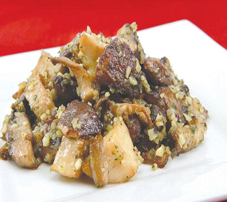 المقادير- 3 أغصان من نبات الطرخون.- 6 أغصان من البقدونس العادي.- 3 أغصان من البقدونس الإفرنجي.- 3 حبات متوسطة من الكراث.- 12 فصاً من الثوم.- 6 ملاعق كبيرة من الزيت النباتي.- 3 ملاعق كبيرة من الزبدة غير المملحة.- كوب ونصف الكوب من فطر كريميني المقطع إلى مكعبات.- كوب ونصف الكوب من فطر شيتاكي المقطع إلى النصف.- كوب ونصف الكوب من فطر المحار المقطع إلى مكعبات.- كوب ونصف الكوب من فطر إرينج المقطع إلى مكعبات.- كوب ونصف الكوب من فطر مايتاكي المقطع إلى مكعبات. - ملح وفلفل أسود طازج ومطحون.الطريقة-1 انزعي الورق من نبات الطرخون والبقدونس العادي والبقدونس الإفرنجي. افرميها معاً وضعيها جانباً لاستعمالها لاحقاً.-2 افرمي الكراث وفصوص الثوم معاً. قلّي الثوم والكراث في 3 ملاعق كبيرة من الزيت في مقلاة على حرارة متوسطة إلى أن يصبح الخليط شفافاً، مدة 5 دقائق، وحركيه باستمرار كي لا يحترق الكراث والثوم. أضيفي الزبدة وتابعي قلي الثوم والكراث إلى أن يصبح الخليط طرياً. ضعي خليط الثوم والكراث جانباً.-3 سخني مقلاة كبيرة على حرارة مرتفعة إلى أن تسخن جيداً. أضيفي الكمية المتبقية من الزيت النباتي وقلّي أنواع الفطر إلى أن يصبح لونها بنياً مائلاً إلى الذهبي، ثم تبّلي الخليط بنصف ملعقة صغيرة من الملح ورشة من الفلفل المطحون.-4 أضيفي خليط الثوم والكراث إلى أنواع الفطر ثم خليط الأعشاب المفرومة. اسكبي الفطر في المقلاة إلى أن يتغطى بشكل متساو بالأعشاب وخليط الثوم والكراث.-5 تذوقي خليط الفطر وأضيفي رشة ملح عند الحاجة.-6 يمكنك أن تصفّي الفطر قليلاً على مناشف ورقية للتخلص من فائض الدهون قبل تقديم الطبق.في الحصة: 207 سعرات حرارية: 3 غرامات من البروتينات، 7 غرامات من الكربوهيدرات، غرام من الألياف، 20 غراماً دهون، 5 غرامات من الدهون المشبعة، 15 ملغ من السكر، 3 غرامات من الكولسترول، 202 ملغ من الصوديوم.