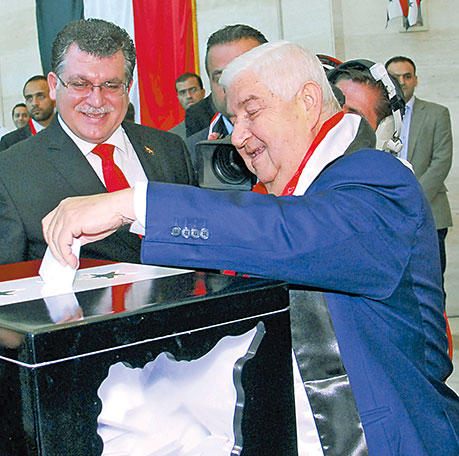 في خضم حرب أهلية قطعت أوصال البلاد وقتلت ما يربو على 160 ألف شخص، توافد السوريون الموالون للنظام أمس على مراكز الاقتراع لتجديد بيعتهم للرئيس بشار الأسد لولاية ثالثة مدتها سبع سنوات عبر انتخابات وُصِفت دولياً بالمهزلة، وشهدت تصويتاً قسرياً في بعض المناطق وآخر توقيعاً بالدم للتعبير عن الولاء للرئيس، الذي يترقب فوزاً ساحقاً.