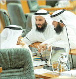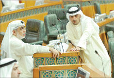 شهدت الجلسة التكميلية لمجلس الأمة أمس إعلان النائبين رياض العدساني وعبدالكريم الكندري استقالتهما من المجلس، واستطاع خلالها قانون حماية البيئة عبور المداولة الأولى، في وقت لم يتم تقديم طلب استعجال إقرار القانون في المداولة الثانية كما جرت العادة، نتيجة وجود مذكرة حكومية متضمنة عدة تعديلات أغلبها تعديلات مطبعية ولغوية على القانون. ونتيجة اعتراض وزير الأشغال العامة عبدالعزيز الإبراهيم على تقرير لجنة المرافق العامة بشأن إنشاء هيئة النقل، والذي اوضح فيه ان الحكومة معترضة على 20 مادة من مواد القانون، قرر المجلس تأجيل مناقشته إلى الجلسة المقبلة، وحدد الاحد المقبل موعداً لاجتماع لجنة المرافق العامة لبحث التعديلات المقدمة على القانون مع الحكومة والنواب. وبناء على طلب نيابي ناقش المجلس سياسة الحكومة بشأن قانون هيئة سوق المال، ووافق على توصيتين، ووسط تباين في الاراء حول مدى دستورية الطلب المقدم، قرر مجلس الامة تأجيل النظر لمدة اسبوعين في طلب تكليف مجلس الامة احالة ما اثاره النائب السابق مسلم البراك في احدى المقابلات التلفزيونية الى النيابة العامة للنظر في اجراءات الحكومة. وبينما وافق المجلس في المداولة الاولى على مشروع بقانون بتعديل بعض أحكام قانون اقامة الاجانب، قرر الغاء الجلسة الخاصة التي كانت مقررة اليوم لبحث سياسة الحكومة في تنويع مصادر الدخل، وترحيلها الى 15 مايو، وذلك بناء على طلب الحكومة.