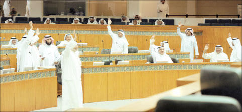تمكن مجلس الامة في جلسته التكميلية امس من اقرار عدة قوانين، واتخاذ الكثير من القرارات، حيث احال الى الحكومة تعديلات قانون الهيئات الرياضية فيما يخص الاستثمار في الرياضة، اضافة الى خمس اتفاقيات. وكلف مجلس الامة ديوان المحاسبة بتزويد اللجنة ببيان احصائي بكل القضايا، التي رفعت ضد جهات الدولة الخاضعة لرقابة الديوان، والتي صدرت فيها احكام قضائية نهائية خلال السنوات الخمس الاخيرة. كما وافق المجلس في بند الرسائل الواردة على طلب النائب محمد طنا بتكليف لجنة الظواهر السلبية دراسة ظاهرة العنف من جانب خدم المنازل للكشف عن أسبابها واقتراح الاجراءات اللازمة لمواجهتها على ان تقدم اللجنة تقريرها خلال شهر من تاريخه. وبينما رفض المجلس طلب النيابة العامة رفع الحصانة عن النواب محمد طنا وعبدالحميد دشتي ونبيل الفضل، وافق على طلب تكليف لجنة الشؤون المالية والاقتصادية البرلمانية تقديم تقريرها بشأن قانون هيئة سوق المال خلال اسبوعين.واقر المجلس خمس اتفاقيات خارجية أمس، واحالها الى الحكومة، في حين أجل مشروع القانون بالموافقة على مذكرة تفاهم بين الكويت وصندوق النقد الدولي بشأن إقامة مركز صندوق النقد الدولي للاقتصاد والتمويل في الشرق الأوسط (في الكويت) لمدة شهر على ان تقدم الحكومة تقريرها في هذا الشأن، كما اجل قانون المحكمة الكلية بانشاء دائرة خاصة بالمنازعات الادارية، وقانون اقامة الاجانب بناء على طلب الحكومة.