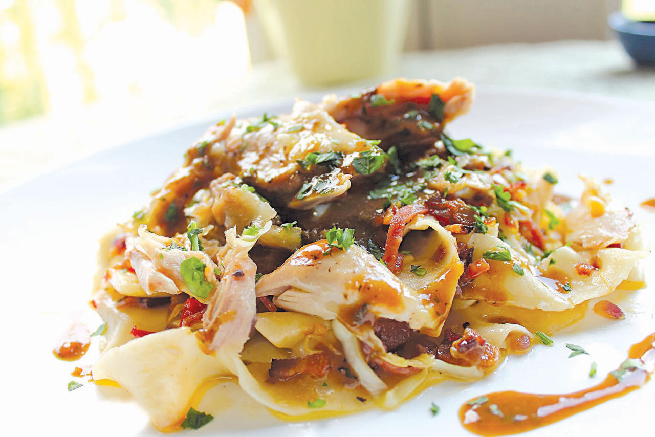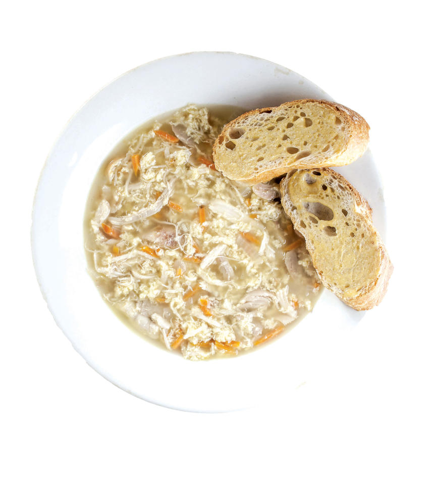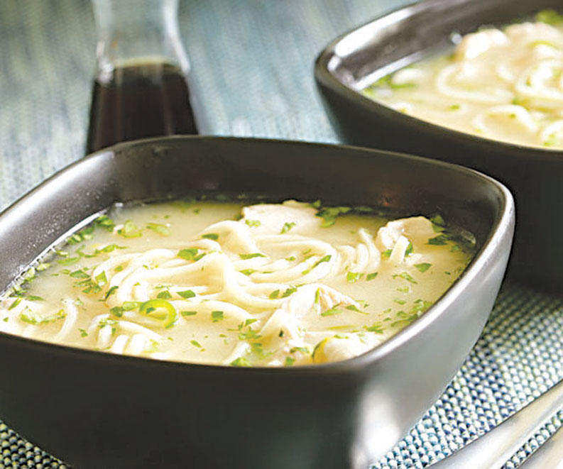 استخدم الطاهي جيمي بانوس من مطعم Purple اأميريكي القليل من الطحين مع البيض وحولهما إلى معكرونة منزلية الصنع غنية بالخردل والمايونيز.1. أعدي المرق بواسطة الدجاج: انزعي اللحم عن العظم وضعيه جانباً. في قدر كبيرة، قلي نصف البصلة الصفراء بعد فرمها في كمية قليلة من زيت الزيتون (إذا شئت أضيفي إليها الثوم المسحوق وجزرة مقطعة وساق كرافس وقليها جميعها). أضيفي إلى الخليط ملعقة صغيرة من معجون الطماطم ونصف كوب من الماء. ضعي العظم في القدر واغمريه بالماء البارد. ضعي القدر على نار عالية إلى أن تغلي، ثم أخفضي الحرارة واتركي الخليط لينضح من ساعة إلى ساعتين (أضيفي الصعتر وورق الغار إلى المرق إذا كانا متوافرين في مطبخك).2. حضري عجينة المعكرونة: ضعي كوبين ونصف الكوب من الطحين ورشة ملح في الخلاط الكهربائي وامزجيهما معاً. أضيفي إلى الطحين بيضتين كاملتين وصفار 4 بيضات، ملعقة كبيرة ونصف الملعقة من خردل ديجون، وملعقتين كبيرتين من المايونيز. تابعي الخلط إلى أن تتماسك العجينة، ثم انقليها إلى سطح مغطى بالطحين واعجنيها بيديك من 5 إلى 10 دقائق (قد تحتاجين إلى نصف كوب إضافي من الطحين). لفي بعد ذلك العجينة بورق بلاستيكي واتركيها لترتاح مدة 20 دقيقة.3. مرري العجينة في آلة صنع المعكرونة ثم قطعيها إلى عيدان طويلة عريضة. رشي فوقها الطحين وضعيها جانباً.4. قطعي ما تبقى من خبز إلى مكعبات صغيرة. امزجيها في وعاء مع قليل من زيت الزيتون والملح والفلفل، ثم ضعيها في صينية خبز وحمريها على حرارة 175 درجة مئوية إلى أن يصبح لونها ذهبيّاً.5. صفي المرق، وتخلصي من العظم واحتفظي بالخضار. اطهي المعكرونة في قدر كبيرة من الماء المغلي المطيب بالملح (يجب أن يكون مذاقه شبيهاً بماء البحر) إلى أن تنضج.6. في قدر صغيرة، ضعي نصف كوب إلى ثلاثة أرباع كوب من المرق مع الخضار، واتركيها على النار لتغلي. عندئذٍ أضيفي إليها المعكرونة، فضلاً عن ملعقتين كبيرتين من الزبدة المقطعة إلى مكعبات صغيرة. وأضيفي أخيراً الدجاج. تابعي الطهو إلى أن تلتصق الصلصة بالجانب الخلفي من الملعقة (إذا جفّ الخليط بسرعة، أضيفي إليه مزيداً من المرق). طيبي الخليط بالملح، الفلفل، والصلصة الحارة. عندما تصبح الصلصة كثيفة، أطفئي النار ووزعي المعكرونة على الأطباق. زينيها بقليل من جبنة بارميزان المبروشة وقليل من مكعبات الخبز المحمر.حساء الدجاج على الطريقة الصينية (4 )ابتكرت سارة مولتون، مؤلفة كتب طبخ على شكة PBS، حساء صينيّاً. تذكر في رسالة إلكترونية: “عندما تحاولين إعداد وجبة العشاء، لا تتجاهلي الفضلات وأعيدي ابتكار الوصفات. لا داعي لأن تتألف كل وجبة من العناصر التقليدية الثلاثة، البروتين والنشاء والخضار. وإذا كنت تملكين حساء دجاج في المنزل، يكفي أن تغمري عظم الدجاج المشوي بالماء البارد، وتضعي القدر على النار لتغلي، ثم تخفضي الحرارة وتتركيها مدة ساعة. صفي بعد ذلك المرق واستخدميه لإعداد الحساء”.1. في قدر كبيرة، قلي ملعقة أو ملعقتين كبيرتين من الزنجبيل المطحون الطازج في ملعقتين كبيرتين من زيت الزيتون على نار متوسطة مدة دقيقتين. أضيفي بعد ذلك أربعة أكواب من مرق الدجاج. واتركي القدر على النار لتغلي.2. في وعاء صغير، امزجي ملعقة كبيرة من نشاء الذرة مع ملعقتين كبيرتين من الماء. وأضيفي هذا المزيج إلى المرق تدريجاً مع التحريك باستمرار. واتركي القدر على النار لتغلي مجدداً مدة دقيقة. أضيفي إليها بعد ذلك كوبين إلى ثلاثة أكواب من لحم الدجاج المقطع وكوباً ونصف الكوب من الرز المطهو. وتابعي الطهو إلى أن يسخن المزيج.3. في هذه الأثناء، قطعي الخبز إلى أربع شرائح وحمصيها في الفرن أو في آلة تحميص الخبز. في وعاء صغير، امزجي ثلث كوب من المايونيز مع نصف ملعقة صغيرة من الصلصة الحارة، نصف ملعقة صغيرة من الثوم المسحوق، وربع ملعقة صغيرة من زيت السمسم المحمص. اقطعي كل شريحة خبز إلى نصفين واطليها بمزيج المايونيز.4. أخفضي الحرارة تحت القدر. حركي الحساء في اتجاه واحد، فيما تضيفين إليه بيضتين كبيرتين مخفوقت