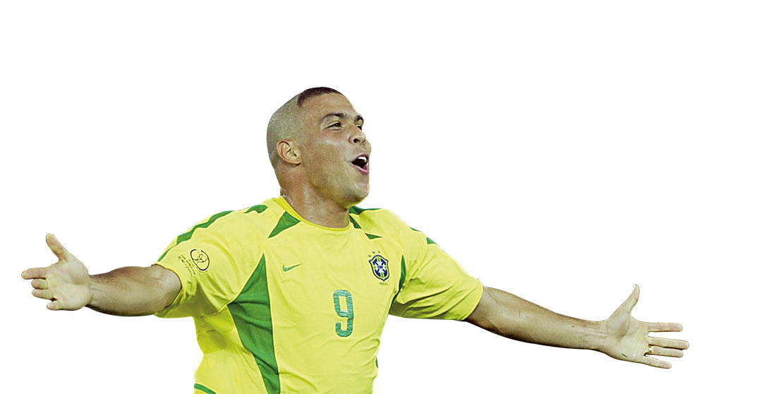 ورفع رونالدو رصيده في النهائيات الى 12 هدفا، بعد ان سجل 4 اهداف في مونديال 1998 فعادل بالتالي رقم مواطنه الشهير بيليه، وبات على بعد خطوتين من الرقم القياسي في جميع النهائيات المسجل وقتها باسم الالماني غيرد مولر (14 هدفا).وفي 2002 نجح رونالدو في محو كابوس نهائي عام 1998، عندما خسر منتخب بلاده امام فرنسا صفر-3، وكان رونالدو تعرض لنوبة صرع قبل ساعات من النهائي الذي جمع البرازيل مع فرنسا قبل اربع سنوات فتأثر زملاؤه بما حصل، وادى ذلك الى خسارة ثقيلة بثلاثة اهداف نظيفة.رونالدو ظاهرةأواخر التسعينيات واذا كان الارجنتيني - الاسباني الفريد دي ستيفانو طبع الخمسينيات بطابعه الخاص والبرازيلي بيليه في الستينيات والهولندي كرويف في السبعينيات والارجنتيني مارداونا في الثمانينيات، فان رونالدو اعتبر ظاهرة اواخر التسعينيات.بدأ رونالدو مسيرته في فريق سان كريستوفاو ومنه انتقل الى كروزيرو ففجر معه طاقته واصبح اسمه على كل لسان، وسجل في موسمه الاول معه 53 هدفا في 54 مباراة، ولعب اول مباراة دولية له ضد الارجنتين في مارس 1994، قبل ان يفتتح رصيده الدولي من الاهداف في المباراة ضد ايسلندا.الأندية تتصارع لضمهوبدأت الأندية الأوروبية تطرق على الابواب رغم ان رونالدو لم يلعب اي دقيقة في مونديال 94 الذي احرز منتخب بلاده لقبه، لكن ذلك لم يمنع ايندهوفن الهولندي من دفع 6.5 ملايين دولار للتعاقد مع النجم الصاعد.وضرب اللاعب بقوة في موسمه الاول وسجل 30 هدفا وتوج هدافا للدوري الهولندي، وامضى مع ايندهوفن ثلاثة مواسم قبل ان ينتقل الى برشلونة مقابل مبلغ قياسي في حينها بلغ 20 مليون دولار.وبلغ رونالدو الذروة مع الفريق الكاتالوني وسجل الهدف تلو الآخر بطريقة ولا اروع وبلغ عددها 47 في 49 مباراة في موسم واحد وقاده الى الكأس المحلية وكأس الكؤوس الاوروبية عام 1997 عندما اختير افضل لاعب في العالم واوروبا. وانتقل الى الدوري الايطالي فتعاقد مع انتر ميلان مقابل مبلغ قياسي ايضا بلغ 28 مليون دولار، وتوج معه بلقب كأس الاتحاد الاوروبي عام 1998 قبل الانتقال الى ريال مدريد الاسباني عام 2002 وتوج معه بلقب الدوري الاسباني (2003 و2007) والكأس القارية (2002) وكأس السوبر المحلية (2003).لعب موسما واحدا مع ميلان الايطالي (2007-2008) ثم انتقل الى كورينثيانز حيث انهى مسيرته معه عام 2011.