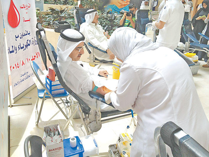 وأشار إلى أن "البنك يتخذ العديد من الإجراءات الاحترازية قبل أن يتبرع الشخص بدمه، للتأكد من أنه قادر على أن يساهم، وأن التبرع لن يضره بشيء".واجب وطنيبدوره قال الوكيل أحمد الجسار: "عندما علمنا بحاجة بنك الدم للتبرع سارعنا بالمشاركة والمساهمة لدعم حملة التبرع بالدم".وأشار إلى أن "التبرع بالدم واجب علينا من منطلق وطني، واجتماعي تجاه البنك، لذلك دعونا أبناء الوزارة إلى التبرع بالدم، آملين أن تكون حملة اليوم ناجحة". من جانبه، قال رئيس العلاقات العامة في بنك الدم علي المحميد، إن الحملة التي شهدتها أروقة وزارة الكهرباء والماء أمس، كانت ناجحة ومميزة، ولاقى التبرع حضوراً ومشاركة واسعة من موظفي الوزارة، مشيرا إلى أن البنك سينظم اليوم حملة للتبرع بالدم في وزارة الدفاع، على أن تكون هناك حملة مماثلة يومي الأربعاء والخميس المقبلين، مشددا على أهمية مثل هذه الحملات في توفير مخزون إضافي من الدم.«الصحة»: لا إفلاسمن ناحية اخرى، أكدت مديرة إدارة خدمات نقل الدم في وزارة الصحة د. ريم الرضوان أن "ما ورد في بعض وسائل الإعلام المحلية عن قرب إفلاس بنك الدم معلومات مغلوطة وعارية من الصحة تماما".وقالت الرضوان، في تصريح لها، إن "بنك الدم بالكويت كحال أغلب بنوك الدم حول العالم، يمر بمواسم تتناقص فيها اعداد المتبرعين"، مشيرة الى "صعوبة التبرع خلال فترة الصيام والعيد وقصر أوقات التبرع في الليل في رمضان".وأضافت أن "وزارة الصحة كثفت حملات التبرع بالدم لاسترداد المخزون الإستراتيجي للبنك الذي يحظى باهتمام ودعم من الوزارة"، مؤكدة "حرص البنك على توفير المخزون الإستراتيجي بصفه دائمة من خلال اتخاذ كل الإجراءات اللازمة للحفاظ على هذا المخزون عن طريق الاتصال والاستعانة بوسائل الإعلام المحلية لتوجيه نداءات إلى جمهور المتبرعين".وذكرت الرضوان أن بنك الدم اتخذ عدة إجراءات احتياطية قبل بدء شهر رمضان عن طريق زيادة حملات التبرع بالدم ورفع المخزون الإستراتيجي إلى ما يعادل الضعف، وذلك لتفادي النقص المتوقع، مبينة أن الدم له فترة صلاحية لا تزيد على 40 يوما، داعية المواطنين والمقيمين إلى التبرع عن طريق بنك الدم المركزي (الجابرية) من الساعة الثامنة صباحا، وحتى الثامنة ليلاً ما عدا الجمعة الذي تكون ساعات العمل فيه من الواحدة ظهرا حتى الثامنة مساء.وأضافت أنه "يمكن كذلك التبرع من خلال الفروع الأخرى لبنك الدم ومنها مستشفى الجهراء والأميري والعدان من الساعة الثامنة صباحا حتى الواحدة ظهرا"، مبينة أن مستشفى العدان يعمل في الفترة المسائية من الرابعة عصرا حتى الثامنة مساء، مثمنة دعم وسائل الإعلام لحملات التبرع والمساهمة في إيصال رسالة التبرع بالدم كمسؤولية اجتماعية مشتركة بين وزارة الصحة والمجتمع.
