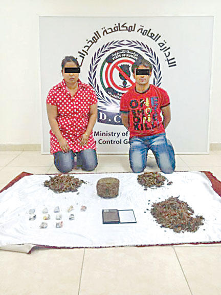 وأضاف المصدر أن رجال المكافحة وضعوا الآسيوي تحت المراقبة المشددة مدة اسبوعين وتأكدوا من نشاطه الاجرامي في عملية ترويج المخدرات، لافتا الى ان رجال المكافحة نجحوا في تجنيد مصدر سري تمكن من اقناع المتهم بعقد صفقة سرية لشراء كمية من مادة الماريغوانا المخدرة، الامر الذي وافق عليه المتهم، وحدد احدى الساحات الترابية في منطقة الرقعي موقعا لإتمام الصفقة، لافتا الى انه في الزمان والمكان المحددين حضر المتهم وسلم المصدر المخدرات وتسلم بدوره نقود رجال المكافحة الذين أطبقوا عليه لحظة التسليم والتسلم واقتادوه إلى مكتب التحقيق.وأشار إلى ان المتهم الآسيوي اعترف لرجال المباحث بانه يخفي في مقر سكنه في منطقة الرقعي كمية من مادة الماريغوانا المعدة للترويج، لافتا الى ان رجال المكافحة توجهوا الى منزل المتهم بعد استصدار إذن من النيابة العامة وعثروا بداخله على كيلواغرام من مادة الماريغوانا، موضحا ان المتهم اعترف بأنه يحصل على المخدرات من صديقته الآسيوية التي تسكن في منطقة المهبولة وتحوز كمية كبيرة من المواد المخدرة، فتوجه رجال المكافحة إلى منزل شريكة المتهم وبتفتيشه عثر بحوزتها على 3 كيلوغرامات من مادة الماريغوانا المخدرة.وذكر المصدر أن المتهمين اعترفا بأنهما كان يهربان المخدرات من بلدهما بعدة طرق، ومن ثم يتم ترويجها بين المتعاطين، لافتا الى ان رجال المكافحة أحالوهما والمضبوطات الى النيابة العامة بعد ان سجلت ضدهما قضية حيازة مواد مخدرة بقصد الاتجار.