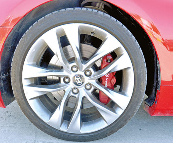 تصميم قويوبالإضافة إلى هيكلها الرائع، تتوفر سيارة جينيسيس كوبيه بمحرّك Lambda بسعة 3.8 لترات ذي 6 اسطوانات وبقوة 303 أحصنة، ويوفر نظام دفع العجلات الخلفية توزيعاً مثالياً للوزن على المحور الأمامي والخلفي بشكل متوازن ليمنح السائق القدرة على التحكم التام بالسيارة، وبحجمه الصغير ووزنه الخفيف يزود ناقل الحركة الأوتوماتيكي الجديد بثماني سرعات أداء سيارة جينيسيس كوبيه بالمزيد من القوة، ويساهم بشكل أكبر في سلاسة نقل الطاقة إلى المحور الخلفي للعجلات.فخامةأما المقصورة الداخلية، فتتوفر فيها كل مزايا الفخامة والراحة الموجودة في السيارات الفاخرة، بتصميم داخلي رائع من خامات عالية الجودة من الدرجة الأولى، وتشمل المقصورة مقاعد جلدية مريحة، وعجلة قيادة قابلة للتحكم، وإضاءة متتالية للإشارات الجانبية بخاصية اللمس، ولوحة عدادات متطورة.أمن وسلامةوكما هو الحال مع جميع سيارات هيونداي، تتفوق جينيسيس كوبيه الجديدة في معايير السلامة والأمان، حيث يوفر نظام الأمان وسادات هوائية للجهة الأمامية والجوانب، لتأمين السلامة القصوى إلى جانب نظام الفرامل المانع للانغلاق (ABS)، مع برنامج الثبات الإلكتروني (ESP)، الذي يقدم الأداء الأمثل في جميع الحالات.وقد أثبتت هيونداي مدى جدارتها وتميزها وسعة آفاقها، من خلال تزويد عملائها بطرازات تتسم بالتنوع والاعتمادية لتلبية مختلف احتياجاتهم. بيع 12 ألف مركبة في 2013ونجحت شركة شمال الخليج التجارية الوكيل الحصري لسيارات ومركبات هيونداي في الكويت بتحقيق إنجاز جديد، محافظة على مرتبتها في الصفوف الأولى لوكلاء «هيونداي» في الشرق الأوسط، محققة نسبة نمو بلغت 11 % خلال عام 2013 المنصرم، لتحتل بذلك المرتبة الثانية بين وكلاء هيونداي في المنطقة من حيث نمو المبيعات.وأعلنت «شمال الخليج»، التي تعتبر واحدةً من الشركات الرائدة والأكثر نمواً وحضوراً في السوق المحلي الكويتي، أنها تمكنت من بيع 12020 مركبة خلال 2013، بحسب تقرير رابطة وكلاء السيارات في الشرق الأوسط، علماً أن الشركة تمكنت في العام الماضي من بيع 10828 مركبة، بحسب الرابطة نفسها.وقد توّج هذا النجاح الاستثنائي عاماً مثمراً لشركة شمال الخليج حصدت خلاله عدة جوائز مرموقة على الصعيدين المحلي والإقليمي، منها حصولها على لقب وكيل العام من «هيونداي»، فضلاً عن درع تكريمية من شركة «شل» العالمية كأفضل شريك تجاري في الشرق الاوسط، وجائزة «أفضل الأعمال» عن فئة التسويق لعام 2013، من قبل منظمة «Awards Intelligence» البريطانية المعروفة عالمياً، وجائزة من شركة «موبيس» المصنع الرسمي لقطع غيار «هيونداي»، وغيرها من الجوائز التي تظهر إصرار الشركة على البقاء دائما في المراتب الأولى.تطوير المعارضواعتمدت «شمال الخليج» خلال السنوات القليلة الماضية استراتيجية تطوير شاملة بدأت بتصميم عصري وثوري لمعرضها الرئيسي في الشويخ، كذلك تحويل مركز الخدمة والصيانة الى ما يشبه عيادة متخصصة للسيارات تلقى فيه كل سيارة اهتماماً دقيقاً وتشخيصاً تفصيلياً ليحظى العميل بخدمة كاملة.وقامت الشركة بشراء قسيمة كبيرة من الأرض تصل مساحتها الى 11250 متراً مربعاً سوف تبني عليها أحدث وأضخم مركز خدمة وصيانة لخدمات ما بعد البيع لسيارات وشاحنات هيونداي في الخليج، وذلك ضمن رؤية ادارة الشركة وما توليه من أهمية كبيرة لتقديم خدمة راقية بتقنية عالية وجودة مميزة لجميع عملاء هيونداي.وبفضل هذه الاجراءات حققت «هيونداي الكويت» نسباً عالية في الحيازة على رضا العملاء وظهر ذلك في ازدياد نسبة مبيعاتها وفي ازدياد حصتها من حجم السوق العام.تجربة الجريدة•: فخامة التصميم ورياضية الأداءبدعوة مشكورة من الوكيل المحلي والحصري لسيارات «هيونداي» شركة شمال الخليج، خاض محرر «الجريدة» نهاية أسبوع ممتعة ومشوقة عنوانها الفخامة في التصميم والرياضية في الأداء بتجربة سيارة هيونداي «جينيسيس» كوبيه، شهد من خلالها على أداء هذا النجم الساطع بقوة إلى مصاف السيارات الرياضية «السبورت» بتصميم رائع و