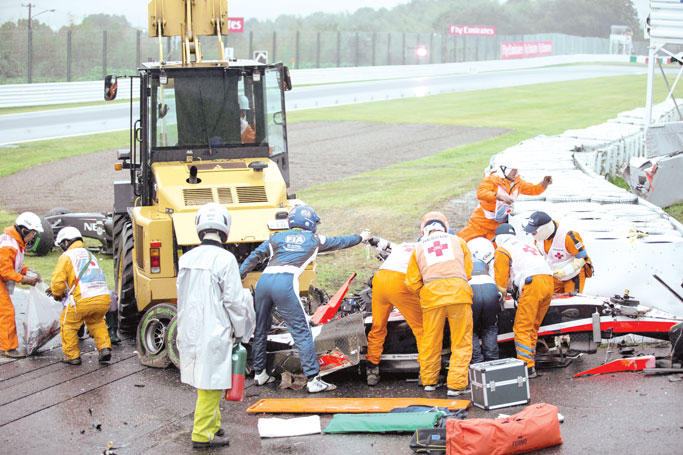 وأشار الاتحاد الدولي للسيارات الى انه وبطلب من رئيسه الفرنسي جان تود سيتولى تشارلي وايتنغ، مدير السباقات في فورمولا واحد التحقيق، مضيفا "ان التقرير (الخاص بالحادث) لا يزال في طور الاعداد"، مركزا في الوقت ذاته على ضرورة معرفة ما حصل بأدق التفاصيل الممكنة. وكشفت عائلة السائق الفرنسي ان الاخير يعاني "ارتجاجا دماغيا حادا" جراء الحادث الذي تعرض له، الا ان الجراح الفرنسي الشهير والاختصاصي في الطب الرياضي البروفيسور سايان، وطبيب الاعصاب الايطالي اليساندرو فيراتي الذي استُدعي بطلب من فريق فيراري، يتواجدان الى جانبه في المستشفى.وجاء في بيان نشره فريق ماروسيا: "إن البروفيسورين سايان وفيراتي يشيدان بالعناية الرفيعة التي قدمها المستشفى لجول ويشكران زملاءهما اليابانيين".وختم البيان "ستصدر نشرة طبية عن الحالة الصحية لجول عندما يلزم الأمر".