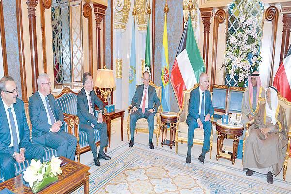 استقبل سمو أمير البلاد الشيخ صباح الأحمد بقصر بيان، صباح أمس، بحضور سمو ولي العهد الشيخ نواف الأحمد، سمو الشيخ جابر المبارك رئيس مجلس الوزراء، ورئيس مجلس وزراء دولة فلسطين الشقيقة الدكتور رامي الحمدالله والوفد المرافق له، بمناسبة زيارته الرسمية للبلاد.وتم بحث العلاقات الثنائية التي تربط البلدين والشعبين الشقيقين، وتوسيع سبل التعاون بينهما في جميع المجالات، كما تم بحث القضايا ذات الاهتمام المشترك. وأقام سمو الشيخ جابر المبارك رئيس مجلس الوزراء مأدبة غداء عمل رسمية على شرف دولة رئيس مجلس وزراء دولة فلسطين الشقيقة الدكتور رامي الحمدالله.وجرى خلال المأدبة تبادل الأحاديث الودية، التي عكست عمق العلاقات التاريخية الوطيدة بين الشعبين الشقيقين، ودعم دولة الكويت للشعب الفلسطيني الشقيق، ومساندته المحقة في دعمه للعيش بسلام وإقامة دولته المستقلة وعاصمتها القدس، وإدانتها للاعتداءات الإسرائيلية المتكررة على المواطنين الفلسطينيين الأبرياء، ودعوة المجتمع الدولي إلى تحمل مسؤولياته، وإجبار إسرائيل على وقف ممارساتها الوحشية ضد الشعب الفلسطيني.وكان دولة رئيس مجلس وزراء دولة فلسطين الشقيقة الدكتور رامي الحمدالله والوفد المرافق له وصل إلى البلاد أمس في زيارة رسمية بدعوة من سمو الشيخ جابر المبارك رئيس مجلس الوزراء.وكان في مقدمة مستقبلي دولته على أرض مطار الكويت الدولي سمو الشيخ جابر المبارك رئيس مجلس الوزراء.وأجريت للضيف مراسم استقبال رسمية، حيث عزف السلام الوطني الفلسطيني، والسلام الوطني الكويتي، ثم قام رئيس مجلس وزراء دولة فلسطين بمصافحة كبار مستقبليه، يتقدمهم النائب الأول لرئيس مجلس الوزراء وزير الخارجية الشيخ صباح الخالد، ونائب رئيس مجلس الوزراء وزير التجارة والصناعة الدكتور عبدالمحسن المدعج، ورئيس بعثة الشرف المرافقة المستشار بديوان سمو رئيس مجلس الوزراء الشيخة الأستاذة الدكتورة رشا الحمود، وعدد من الشيوخ والوزراء والمحافظين والمستشارين بديوان سمو رئيس مجلس الوزراء، وكبار قادة الجيش والشرطة والحرس الوطني وكبار المسؤولين بالدولة، وديوان سمو رئيس مجلس الوزراء، وعميد السلك الدبلوماسي بالإنابة سفير جمهورية الصومال لدى دولة الكويت عبدالقادر أمين شيخ، وسفير دولة فلسطين لدى الكويت.