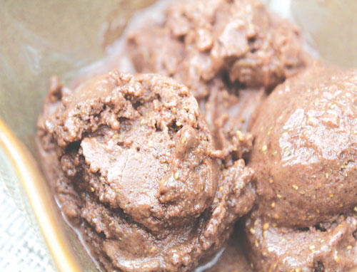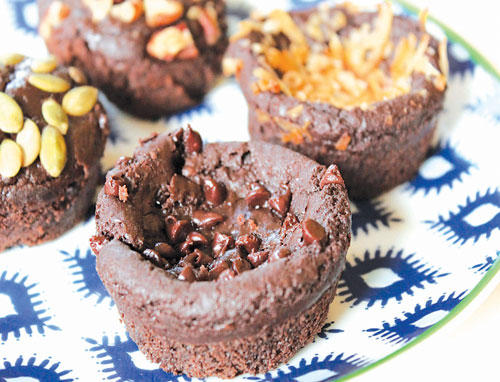 عدد الحصص: 24 كعكة.المقادير:- كوب وربع كوب من الحمص المعلب، المغسول، والمجفف جيداً.- ملعقتان صغيرتان من خلاصة الفانيلا.- نصف كوب من زبدة الفول السوداني أو اللوز الطبيعية تعادل حرارته حرارة الغرفة، - فضلاً عن ملعقتين كبيرتين إضافيتين.- ربع كوب من العسل أو عصير القيقب.- ملعقة صغيرة من البايكنغ باودر.- نصف كوب من رقاقات الشوكولا الداكن أو نصف المحلى.الطريقة:1. حمي الفرن على حرارة 190 درجة مئوية.2. اخلطي المكونات كافة معاً، باستثناء الشوكولا، في خلاط كهربائي إلى أن تحصلي على خليط متجانس، ولا تنسي أن تنزلي ما قد يعلق على جوانب الخلاط. أضيفي بعد ذلك رقاقات الشوكولا، وتابعي الخلط إلى أن تحصلي على خليط كثيف دبق.3. شكلي من هذه العجينة كرات متوسطة الحجم. ضعيها في صينية من دون أن تطليها بأي مادة دهنية. اضغطي على الكرات قليلاً إلى أن تشكل كتلاً صغيرة.4. ضعيها في الفرن طوال عشر دقائق، ثم أخرجيها من الفرن واتركيها جانباً لتبرد مدة عشر دقائق. تبقى هذه الكرات طرية ولا تشتد على غرار الكعك العادي. لذلك من الأفضل أن تقدميها ساخنة.ملاحظة: تحققي من قائمة المكونات وتأكدي من أن الزبدة لا تحتوي على سكر مضاف. وإذا لم تكن تحتوي أيضاً على الملح، فأضيفي رشة إلى الخلطة.المكون السري: الحمص2 مثلجات الشوكولاعدد الحصص: 2 إلى 4.المقادير:- ربع كوب من بذور الشيا.- كوب وثلثا كوب من الحليب (حليب اللوز أو جوز الهند أو البقر غير المحلى).- ملعقتان كبيرتان من مسحوق الكاكاو غير المحلى.- 3 ملاعق كبيرة من عصير القيقب.- ملعقة صغيرة من خلاصة الفانيلا.- 28 غراماً من الشوكولا غير المحلاة والمذوبة.- 4 حبات من التمر المجدول أو 8 حبات من تمور كاليفورنيا.الطريقة:1. اخلطي المكونات كافة معاً، باستثناء التمر، في وعاء متوسط الحجم إلى أن تمتزج بالكامل.2. أضيفي بعد ذلك التمر واتركي الخليط في البراد طوال الليل أو مدة أربع ساعات على الأقل.3. صبي الخليط في خلاط عالي السرعة وامزجيه إلى أن تحصلي على خليط متجانس. يجب أن يكون المزيج كثيفاً وطرياً.4. أعيدي الخليط إلى الوعاء واتركيه في البراد إلى أن تصبحي جاهزة لوضعه في آلة صنع المثلجات.5. ضعيه في آلة صنع المثلجات وفق توجيهات المصنع.6. قدميه في الحال أو ضعيه في وعاء يمكنك إقفاله بإحكام واتركيه في الثلاجة إلى أن يشتد كفاية ويصبح بإمكانك تقديمه كنوع من المثلجات.إذا تركته في الثلاجة مدة طويلة، يصبح صلباً ويصعب عليك تقديمه من دون تذويبه.المكون السري: بذور الشيا3 تروفل الشوكولا مع الأفوكا عدد الحصص: نحو 20 حبة.المقادير:- حبة أفوكا ناضجة متوسطة الحجم.- 280 غراماً من رقاقات الشوكولا الداكن.- ربع كوب من قطع الكاكاو المخمرة والمحمصة.- ملعقتان كبيرتان من مسحوق الكاكاو غير المحلى.الطريقة:1. اقطعي حبة الأفوكا وأخرجي لبها، ثم استخدمي شوكة أو خلاطاً كهربائياً لتهرسي الأفوكا إلى أن تحصلي على خليط متجانس.2. ذوبي رقاقات الشوكولا في الميكروويف على مراحل تدوم كل منها 10 إلى 20 ثانية، محركةً إياها بين المرحلة والأخرى، إلى أن تذوب بالكامل.3. ضعي خليط الأفوكا في الوعاء مع الشوكولا الذائب واخلطيهما جيداً. أضيفي بعد ذلك قطع الكاكاو، إذا أردت. واتركي الخليط في البراد مدة ساعة.4. خذي ملعقة من الخليط وحوليها إلى كرة بين يديك. كرري العملية إلى أن تنتهي من كامل الخليط. ضعي مسحوق الكاكاو في وعاء قليل العمق ودحرجي الكرات فيه إلى أن يغطيها بالكامل.تستطيعين الاحتفاظ بهذه الكرات في وعاء يمكنك إقفاله بإحكام في البراد طوال ثلاثة أيام. لكن مذاقها يبقى الأفضل عندما تقدمينها في الحال أو عندما تكون حرارتها معادلة لحرارة الغرفة.المكون السري: الأفوكا4 براوني نباتي طري بالفاصولياء السوداء عدد الحصص: 12 قطعة.المقادير:- ملعقتان كبيرتان ونصف الملعقة من بذور الكتان. - علبة (425 غراماً) من الفاصولياء السوداء المغسولة والمجففة.- 3 ملاعق كبيرة من زيت جوز الهند المذوب.- ¾ كوب من مسحوق الكاكاو غير المحلى.- ربع ملعقة من ملح البحر.- ملعقة صغيرة من خلاصة الفانيلا.- نصف كوب م