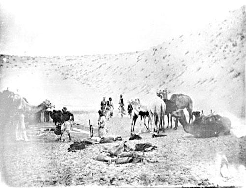 شرعنا في الرحيل الساعة 6.15 وسرنا عبر أرض مغطاة بالحصى تتخللها تلال رملية مثل تلك التي عبرناها يوم أمس، وفي الساعة 8.5 أخذت القياسات على تلة «بيضات البيت؟»، وقد لا يكون ذلك الاسم الصحيح. وفي الساعة 8:35 شاهدنا حلوان والخنفة وعند الساعة 9.46 حصلت على سلسلة من القياسات من حلوان، وسنام، وذويبان، ومشيديه (ولكنني لست متأكدة تماما من صحة الاثنين الأخيرين، لم تكن لهما أهمية من ناحية المسافة) وإلى اليمين باتجاه الطعوس التي هي في نهاية الطرف الجنوب الغربي من النفود، وتيماء تبعد عنا مسافة مسيرة يوم للذلول، ويقع طريقنا إلى اليسار منها.وفي الساعة 10.55 كانت تلال ثليثوات الصخرية إلى يسارنا وقمت بأخذ قياس الاتجاهات والمسافات من مكان ربما هو مشيدية، ثم عبرنا خبراء أم الطرفة الجافة، وأخذت قياسات من فوق ثليثوات في الساعة 11.45، ومرة أخرى في الساعة 12.30 قمت بنفس الشيء في حلوان وسنام. ومنذ مرورنا بالخبراء ونحن نسير فوق أرض منبسطة مغطاة بالحصباء السوداء، وفي الساعة 12:50 ودّعنا ثليثوات ووصلنا إلى تلال العسافية التي تقع في الجانب الجنوبي من وادي نيّال. وفي الوادي أكثر من 100 قليب (بئر) ولكن لا تتوافر فيها المياه إلا في حالة أن تسقط الأمطار بغزارة ويسيل الوادي (فقط السيل)، وهذه المرة أعتقد أن قياساتي صحيحة لكل من: حلوان، وسنام، وذويبان.وصلنا إلى مضارب الفقير في الساعة 1.30 في وادي نيال، التي تبعد مسيرة نحو 3 ساعات من العسافية، وهناك خبراء تسمى عروس تتدفق إليها المياه من الغِمَار عند سقوط الأمطار، وبيّن لي مساعد كيف أن الشرارات يحتمون بصدوع أكوام الحجر الرملي عندما تمطر لتفادي البلل من الغيث، ولفت انتباهي إلى واحدة منها، وأضاف أنها أيضا مأوى جيد للحماية من حرارة الشمس.والفقير ليس لهم أعداء في هذه اللحظة ما عدا هتيم، وقال حامد وزايد: نحن الفقير نخاف من شمر، لأنهم يعرفون غارة عودة أبو تايه القادمة ولم يحذروا أصدقاءهم شمر، وكذلك أبدى مساعد شعوره بالخوف أيضا، وجدير بالذكر أن ظاهر من فخذ سرحان من الفقير.كانت الرياح تهب علينا باردة طوال اليوم ولكن الشمس كانت حارقة عندما خيمنا، والأرض مغطاة بعشب وفير، ونشب خلاف كبير حول أي طريق نسلك، فعلي وغادي يريدان أن نسلك طريق مورد العسافية- لأنه أقصر حسب اعتقادهما- حيث نسقي رواحلنا ونواصل مسيرتنا من هناك، عبر ثمايل الشبكة في النفود، ثم إلى بير حيزان وهو نفسه من الخبراء إلى حيزان، وهذا الخلاف إما أن يكون بسبب الخوف من شمر (حيث كان فخذ السويد من شمر يقطنون في الشبكة عندما غزاهم عودة أبو تايه والآن قد ارتحلوا شرقا) أو لأنه، كما يقولون، لوعورة الطريق نتيجة كثرة الطعوس على امتداده، أما الآخرون فيحبذون اتخاذ طريق الخبراء، وأنا لا أعتقد أن هناك فرقا كبيرا في الوقت الذي يستغرقه أي الطريقين.وعلمت أن الأمير ليس في حائل الآن إنما هو قرب الحيانية، وأعتقد أن هذا أمر مؤسف بالنسبة إلي، ويقال إنه قد أخطر جميع رجاله عن قدومي إلى حائل، ولكن لا أعلم فيما إذا قد يسمح لي بذلك أو يحيلني إلى جهة أخرى، وكذلك لا أعرف مدى صحة هذه الأخبار، وبدا غروب الشمس وطلوع القمر معا تقريباً.الأربعاء 11 فبراير 1914شرعنا في الرحيل في الساعة 6 صباحا، وكان الجو غائما، وصعدت ركابنا الضفة المقابلة من الوادي، ومن الساعة 6.20 حتى تقريبا الساعة 10 ونحن نقطع أرض «جَلَد» مفروشة بالحصى، أرض قفراء تخلو تماما من الكلأ، حتى الساعة 10 تقريبا ونحن نسير إلى الشرق من الطعوس وبقربها، ثم اتجهنا أكثر غربا فوق تلال رملية، وأصبحت الأرض رملية غير حصوية.وفي الساعة 11.30 وصلنا الى خبراء الفصفص الواسعة، أرضها منخفضة تحيط بها تلال رملية وقاعها صلبة، توقفنا في هذه الخبراء الطيبة، وسقينا رواحلنا وملأنا قربنا (السقاء) واستغرق ذلك نصف ساعة.إنه مكان مهجور وبائس ولكنه غمرني بالفرحة والسعادة لرؤيتي الماء فيه؛ لأنه إذا لم نعثر على الماء فيه فسنضطر أن نتجه جنوب غرب إلى البيد، وهو قريب جدا من تيماء وسيكون مضيعة للوقت. كان زايد حريصا على أن نخيّم لمد