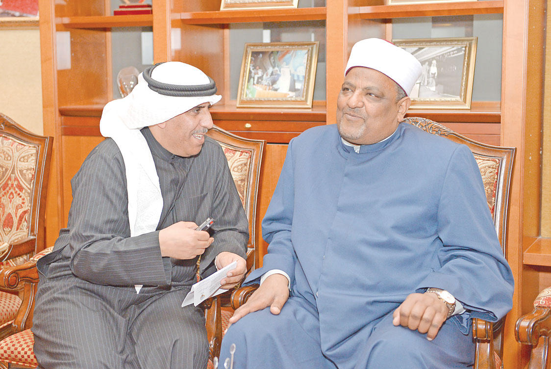 وأضاف أن «الأزهر وصف داعش بكل الأوصاف ما عدا الكفر، قلنا إنهم خوارج العصر، ومحاربون لله ورسوله، وإنهم من المفسدين». وأشار إلى أن «الأزهر أول من دانهم وندد بهم، وأول من برأ الإسلام من أفعالهم وحذر منهم، ولكن ربما أُخِذ عليه، وهو خطأ شديد من فاعليه، أنه لم يكفر (داعش)، وهذا الذي أوجد اللغط، فالأزهر لم يتعرض في الحكم على عقيدة داعش».وعن علاقة الأزهر الشريف بجماعة الإخوان المسلمين، لا سيما بعد تصنيفها جماعة إرهابية في مصر، أكد أن الأزهر أحد مؤسسات الدولة المصرية وينظر إلى «الإخوان» كما ينظر إلى «داعش». وفي ما يلي نص اللقاء:• بداية حدثنا عن زيارتك للكويت؟- العلاقات بين الكويت ومصر متميزة وقديمة والعلاقات الشعبية علاقات تواصل وترابط والحمدلله حتى في أوقات الصعوبات التي مرت في العلاقات بين الدول العربية كانت العلاقة الشعبية مميزة بين الشعبين والعلاقات الرسمية أيضا، وهذه الزيارة وهي الأولى بالنسبة لي لدولة الكويت تأتي تلبية لدعوة كريمة من وزارة الأوقاف والشؤون الإسلامية للبحث في مجالات التعاون خلال هذه الفترة الحرجة والدقيقة التي تمر بها الأمة الأسلامية والعربية تحديدا، وكيفية مواجهة هذه التحديات من خلال تبني خطاب ديني معتدل يعالج الصورة التي شوهت من بعض الجماعات غير المنضبطة وغير المنتمية إلى الفكر الوسطي الذي ينتهجه الأزهر الشريف. ونهدف من وراء ذلك إلى إصلاح ما يمكن إصلاحه، لأن الإسلام شوه كثيرا على يد هذه الجماعات الإرهابية مثل "داعش" وغيرها التي تتبنى أعمالا تتنافى مع القيم الإنسانية والدينية، وتنسب هذه الأفعال إلى ديننا الإسلامي، الأمر الذي شوه صورته كثيرا، خصوصا في المجتمعات الغربية مما يحتاج إلى استراتيجية معينة لمواجهة هذا التشويه وإعادة الصورة بما يخدم مصلحة الاستقرار والسلم العالمي ويجنب الدين الإسلامي هذه الاتهامات التي دست عليه ظلما وعدوانا من تصرفات هؤلاء الذين لا يعرفون كثيرا عن تعاليم الدين الإسلامي.التعاون بين الأزهر والكويت• هل ستكون هناك مجالات للتعاون بين الأزهر الشريف ودولة الكويت في مجالات محددة؟- التعاون موجود بين الأزهر الشريف وجميع الدول الإسلامية، وكذلك العديد من الدول غير الإسلامية التي يوجد بها مسلمون، فعلماء الأزهر الشريف يوجدون في الدول العربية وفي دولة الكويت وهو يؤدون دورهم، والأزهر الشريف على استعداد لتقديم المزيد، خصوصا ان التعاون ليس في مجال الدعوة فقط بل في مجالات أخرى كالتعليم ونشر الكتب. ونحتاج في المرحلة المقبلة إلى التركيز على هذا النوع من التعاون الذي يعد صورة من صور العلاج المطلوبة، فهناك كتيبات يقوم بها الأزهر حاليا مبسطة تعرف الإسلام وسماحته ونبذ العنف وقبول الآخر وتكشف الغطاء عن هذه الجماعات المندسة التي تحسب على الإسلام ظلما وعدوانا وتشوه الصورة، إذ نسعى إلى إرسال هذه الكتيبات إلى العديد من دول العالم باللغات التي تتحدثها هذه الدول، لتكون خير رد على الافتراءات التي توجه للدين الإسلامي.الوضع العربي• العديد من الدول العربية شهدت في السنوات الأخيرة حوادث إرهابية دموية أودت بأرواح آلاف الأبرياء، كيف تقيم الوضع العربي في الوقت الحاضر؟- نحن بحاجة ماسة في هذه الأيام إلى التكاتف أكثر لمواجهة التحديات التي توجه إلى المنطقة العربية بصورة واضحة، وكثير من الأمور المقلقة والتطورات السريعة تتطلب تواصلا أكثر لقراءة هذه الأبعاد ومعرفة مدى تأثيرها على المنطقة العربية واستقرارها، فهذه الفترة نحن بحاجة إلى تبني رؤية موحدة بيننا كعرب واستراتيجية محددة للحفاظ على التواصل بين الأشقاء.• ما شهدته بعض الدول العربية من ثورات شعبية أطلق عليها الربيع العربي، هل تعتقد أن هذه التسمية صحيحة في ظل النتائج التي نشهدها حاليا من قتل وتشريد آلاف العرب والمسلمين؟- المسميات ليست المشكلة، فالعبرة بالنتيجة، والنتيجة لم تستقر حتى الآن في أي دولة من الدول، يمكن استغلال ما حدث إذا أحسن الناس استغلاله قطعا سيحقق نتائج إيجابية، 