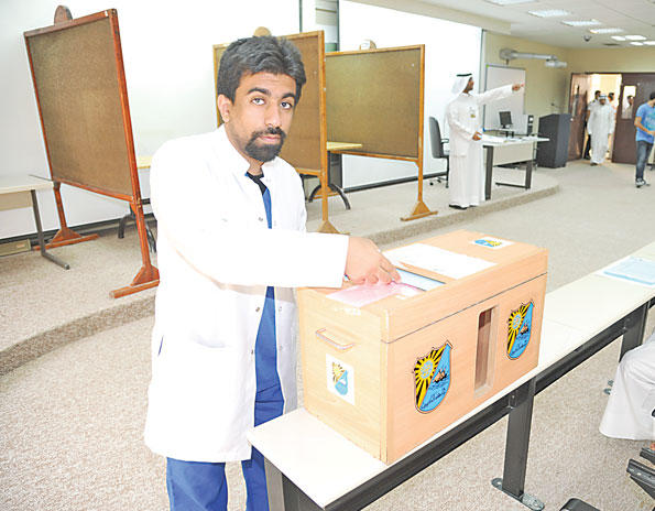 وتوجه الطلبة الذين يحق لهم التصويت للإدلاء بأصواتهم واختيار ممثليهم، وسط تسجيل لجنة اقتراع الطالبات حضورا أكبر من لجنة الطلاب منذ فتح التصويت عند التاسعة صباحا وحتى الثالثة عصرا.وحضرت القائمتان بقوة من خلال مقراتهما الانتخابية حول لجان الاقتراع، وتوزع أنصارهما في المحيط نفسه، مع انتشار اللوحات التي تحمل الشعارات الانتخابية على طول جدران الكلية. وأكدت رئيسة لجنة اقتراع الطالبات في الكلية إسراء السبتي أن الاقبال كان جيداً جدا، حيث جرت العملية الانتخابية بهدوء تام منذ ان فتحت صناديق الاقتراع ابوابها، مشيرة الى ان عدد الأصوات بلغ 35 صوتا خلال الثلاثين دقيقة الأولى من أصل 410 طالبات مقيدات، وتنامى حتى وصل إلى 198 عند الحادية عشرة والنصف.في المقابل، قال رئيس لجنة اقتراع الطلاب سلمان بوهادي إن الإقبال كان متوسطاً منذ بدء التصويت عند الساعة 9.10 صباحا، مرجعا عدم الإقبال عند فتح الصناديق صباحا إلى التزام الطلاب بمحاضرات خارج الكلية.وأشار بوهادي الى ان عدد الاصوات بلغ 13 صوتا خلال النصف ساعة الأولى، وذلك من أصل 232 طالباً، مبيناً أن العدد وصل الى 97 عند الحادية عشرة والنصف ظهرا.من جهته، قال الرئيس السابق لرابطة طلبة الطب يوسف السبت إن كلية الطب تتسم بتميز اقبالها الطلابي والمشاركة الكبيرة في العملية الانتخابية، موضحاً أن سبب فتح لجان الاقتراع عند التاسعة بدلاً من الثامنة هو تغير أماكنها، مشيرا الى أن التصويت تزداد حدته بعد الساعة 12، إثر انتهاء الطلاب من دوامهم في المستشفى، خصوصا لمن هم في السنوات الاكلينيكية.وقال منسق قائمة الأكاديمية عبدالله الكندري إن كلية الطب تشهد أعلى نسبة حضور طلابي كل عام في انتخابات الجامعة بنسبة تتراوح بين 97 و98 في المئة.