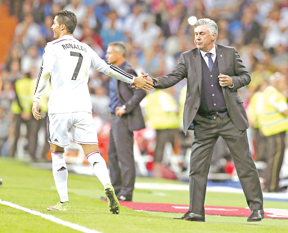 ضم الإيطالي كارلو أنشيلوتي المدير الفني لفريق ريال مدريد الإسباني لكرة القدم صوته إلى فلورنتينو بيريز رئيس النادي، في الإشادة بالبرتغالي كريستيانو رونالدو مهاجم الفريق، وأكد أنه الأجدر بأن يكون وريث وخليفة أسطورة كرة القدم ألفريدو دي ستيفانو. ولدى سؤاله، في مؤتمر صحافي امس الاول، عما إذا كان يتفق مع بيريز في ترشيح رونالدو لجائزة الكرة الذهبية لأفضل لاعب في العالم لعام 2014، وصف أنشيلوتي لاعبه البرتغالي بأنه «جدير بأن يكون خليفة ووريثا لدي ستيفانو (نجم الريال السابق)»، مضيفاً: «نعم، أعتقد أنه عامل كبير في الملعب، كريستيانو في غاية الأهمية». وأشار أنشيلوتي إلى أن النتائج تضع رونالدو في مقدمة المرشحين للفوز بالكرة الذهبية، وقد ينافسه أحد لاعبي المنتخب الألماني الفائز بلقب كأس العالم 2014 بالبرازيل. وأكمل أنشيلوتي 500 يوم في قيادة الريال، واحتفل بهذا من خلال الإشادة التي تنهال على فريقه، بعدما حقق 12 انتصارا متتاليا في المباريات التي خاضها في الآونة الأخيرة بمختلف البطولات.