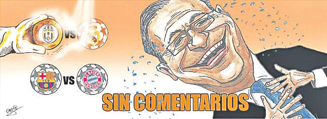 ألمحت صحيفة سبورت الكتالونية إلى أن فلورنتينو بيريز رئيس نادي ريال مدريد الإسباني قد تدخل في نتيجة قرعة دور نصف النهائي من مسابقة دوري أبطال أوروبا لكرة القدم، ونشرت الصحيفة الإسبانية الشهيرة رسماً ساخراً، أوضحت خلاله أن القرعة لم تجرَ بشفافية وأن بيريز تدخل ليقع فريقه أمام يوفنتوس الإيطالي (أضعف الفرق الأربعة المتأهلة) حسب رأي الصحيفة ويظهر في الرسم الكرات الصغيرة التي استخدمت في القرعة ويظهر كل من برشلونة وبايرن ميونيخ معاً وفوقهما ريال مدريد وبجواره يد خفية تضع كرة عليها شعار اليوفي بشكل مختلف عن كرات القرعة وإلى جوار الكرات يظهر فلورنتينو بيريز وهو يضحك حتى نزول دموع الفرح من عينيه وهو يقول: لا تعليق.