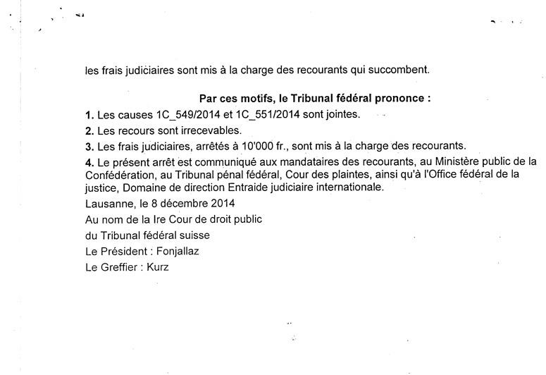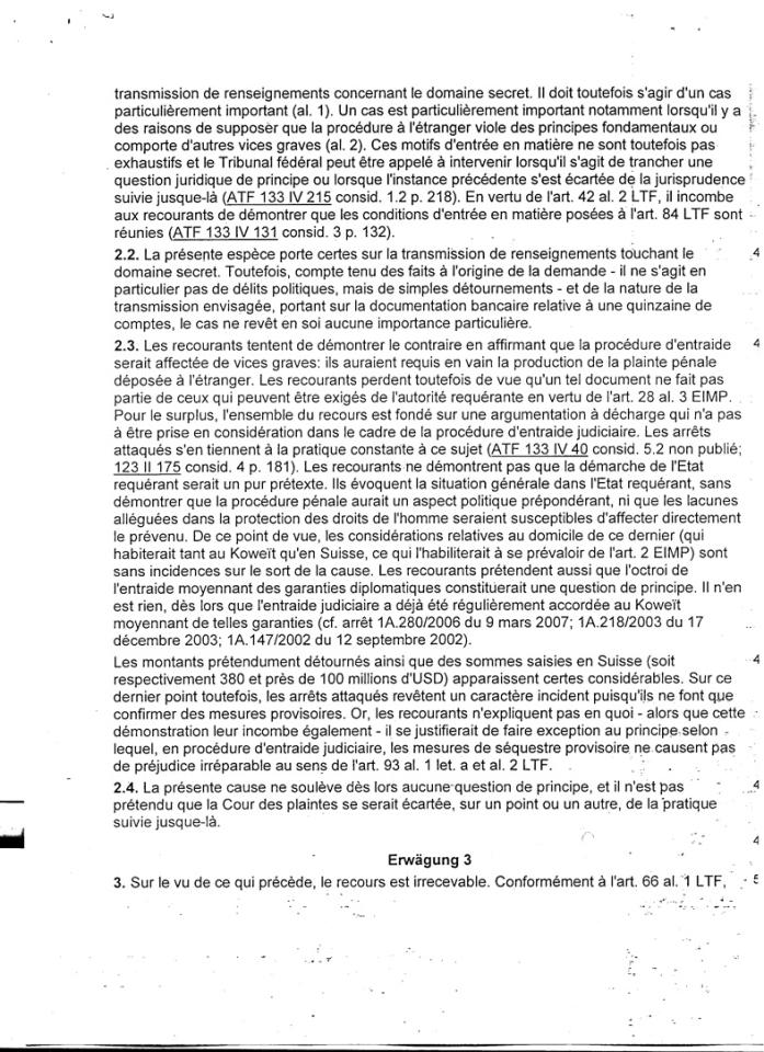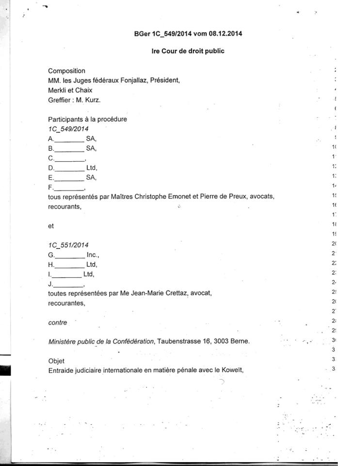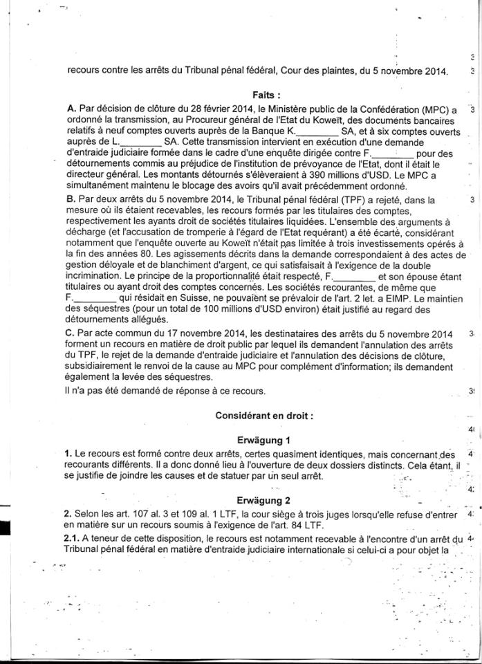 ردّت المحكمة الأولى للقانون المدني للمحكمة الفدرالية السويسرية الطعون المقدمة من المدير العام السابق لـ«التأمينات الاجتماعية»، فهد الرجعان، في قرارات المحكمة الجنائية الفدرالية (محكمة الاستئناف نوفمبر 2014) والمتعلقة بالحجز على 15 حسابا مصرفيا على علاقة بالدعوى المُقامة ضده.وجاء الطعن على قرار المدعي العام الذي أبقى الحجز على الأصول بموجب قرار سابق استنادا الى «تهمة الاختلاس من مدخرات الدولة، حيث كان المدعى عليه (الذي يشار اليه في وقائع الحكم بـ»السيد ف») يشغل منصب مدير عام، وبلغت قيمة الأموال المختلسة 390 مليون دولار أميركي».وبموجب قرارين صادرين بتاريخ 5 نوفمبر 2014، ردت المحكمة الجنائية الفدرالية الطعون المقدمة من أصحاب الحسابات المحجوز عليها، وبالتالي من أصحاب الشركات التي تمت تصفيتها. و«قد تم رفض الحجج المقدمة (وتهمة الاحتيال ضد الدولة المطعون بها) آخذين في الاعتبار أن التحقيقات التي أجريت في دولة الكويت لم تقتصر على ثلاثة استثمارات تمت في أواخر الثمانينيات. وإن الأفعال الموصوفة في الطلب تندرج ضمن الأفعال غير المشروعة وتبييض الأموال وينطبق عليها هنا مبدأ ازدواجية التجريم. إن مبدأ المناصفة واضح بين السيد ف... وزوجته كأصحاب للحسابات المعنية».واعتبر القرار أن الأحكام المطعون بها مطابقة للتدابير القانونية المتبعة في هذا المجال. ولم يثبت أصحاب الطعون أن الإجراء المتبع من الدولة هو مجرد ذريعة. كما أن الاعتبارات المتعلقة بمكان إقامة الطاعن (المقيم في سويسرا كما في الكويت) لا تؤثر أبدا في نتيجة القضية.وفي ما يلي ترجمة النص الحرفي للحكم الصادر عن المحكمة الأولى للقانون المدني للمحكمة الفدرالية السويسرية في لوزان 8 ديسمبر 2014:المحكمة الابتدائية للقانون العاممؤلفة منالسادة القضاة فوجالَ، ميركلي وشيكاتب المحكمة: كورزمشاركين في الدعوى1C_549/2014ممثلين جميعاً بالمحامي كريستوف إيمونيه وبيار برو المتقدمين بالطعنو1C_551/2014ممثلين بالأستاذ المحامي جان-ماري كريتاز، المتقدمين بالطعن.ضدّالمدّعي العام الاتحادي، توبنستراس 3003، 16 بيرنالموضوع: التعاون الدولي في المسائل الجنائية مع دولة الكويت، طعون في قرارات المحكمة الجنائية الفدرالية، محكمة الاستئناف 5 نوفمبر 2014.وقائع:أ- بناء على القرارات الختامية الصادرة بتاريخ 28 نوفمبر 2014، قرر المدعي العام الاتحادي إحالة المستندات المصرفية العائدة لـ9 حساباتٍ لدى بنك........، و6 حسابات لدى بنك ....... في سويسرا، إلى المدعي العام لدولة الكويت. وتأتي هذه الإحالة استجابة لطلب بالتبادل الجنائي في الدعوى المقامة ضد السيد ف... بتهمة الاختلاس من مدخرات الدولة، حيث كان المدعى عليه يشغل منصب المدير العام، وبلغت قيمة الأموال المختلسة 390 مليون دولار أميركي. وبالتزامن، أبقى المدعي العام كذلك على قرار الحجز على الأصول الذي كان قد أخذه سابقا.B- بقرارين صادرين بتاريخ 5 نوفمبر 2014، ردت المحكمة الجنائية الفدرالية الطعون المقدمة من أصحاب الحسابات المحجوز عليها، وبالتالي من أصحاب الشركات التي تمت تصفيتها. وقد تم رفض الحجج المقدمة (وتهمة الاحتيال ضد الدولة المطعون بها)، آخذين في الاعتبار أن التحقيقات التي أجريت في دولة الكويت لم تقتصر على ثلاثة استثمارات تمت في أواخر الثمانينيات. إن الأفعال الموصوفة في الطلب تندرج ضمن الأفعال غير المشروعة وتبييض الأموال، وينطبق عليها هنا مبدأ ازدواجية التجريم. إن مبدأ المناصفة واضح بين السيد ف... وزوجته كأصحاب للحسابات المعنية.ولا يمكن للمؤسسات الطاعنة بالقرار والسيد فـ... المقيم في سويسرا، الاستفادة من البند 2. الإبقاء على حجز المبالغ (التي تصل قيمتها الإجمالية الى 100 مليون دولار أميركي تقريبا) مبرر كضمان على الأموال المختلسة المزعومة.C- وبقرار مشترك في 17 نوفمبر 2014، تقدم المدعى عليهم في قضية 5 نوفمبر بطعن على القانون العام، مطالبين بإلغاء قرارات المدعي العام وردّ طلب التعاون القضائي وإبطال قرارات المحكمة، وبالتالي إحالة ال