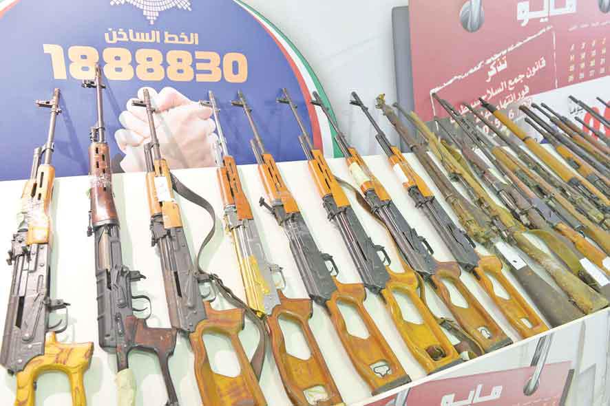 قال نائب رئيس مجلس الوزراء وزير الداخلية الشيخ محمد الخالد إن حملة جمع السلاح أسفرت عن ضبط ١٨٣٢ قطعة متنوعة و٥ أطنان من الذخيرة قبل ٢٧ يوماً من انتهاء مهلة السماح المحددة قانوناً بأربعة أشهر.