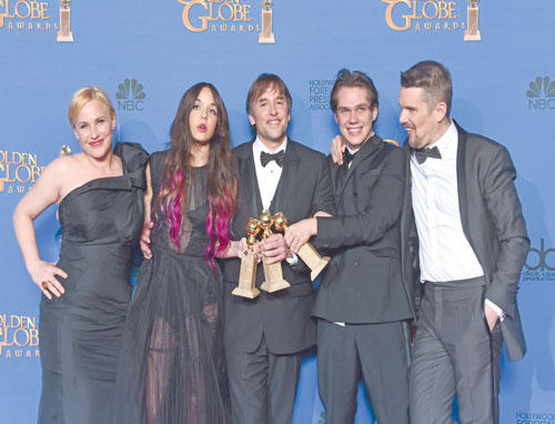 ويروي "الصبا" طفولة صبي صغير (إيلار كولتراين) الذي يصبح رجلا في عائلة ممزقة. وهو فيلم فريد من نوعه صور على مرحلة 12 عاما مع الممثلين ذاتهم: ايلار كولتراين الذي يشب أمام أعين المشاهدين، وباتريسيا أركيت التي تلعب دور الأم، وقد فازت بجائزة افضل ممثلة في دور ثانوي، وايثان هوك وآخرون.وتنافس "الصبا"، خصوصا مع "ثيري أوف افريثينغ" من بطولة ايدي ريدماين الذي فاز بجائزة أفضل ممثل في فيلم درامي، فضلا عن "إميتايشن غايم" و"فوكسكاتشر" و"سيلما".ومن الفائزين الآخرين ج.ك. سيمنز الذي نال جائزة أفضل ممثل في دور ثانوي عن مشاركته في فيلم "ويبلاش". وطوال الحفلة توالى تكريم الضحايا الـ17 لاعتداءات باريس.مسيرة فنيةوقال النجم الهوليوودي جورج كلوني، وهو يتسلم جائزة "سيسيل بي دوميل" مكافأة على مسيرته الفنية والتزامه الإنساني "اليوم كان نهارا رائعا مع نزول ملايين الأشخاص الى الشارع ليس فقط في باريس، بل في العالم بأسره".وأضاف بالفرنسية "لن نسير في الخوف. لن نفعل ذلك.. "أنا شارلي".وأمام الصحافيين تمنى كلوني ألا تغذي هجمات باريس شعورا مناهضا للمسلمين.حرية التعبيروفي مطلع الأمسية قال ثيو كينغما رئيس جمعية الصحافة الأجنبية التي تمنح جوائز الكرة الذهبية، يجب أن نكون موحدين في مواجهة أي شخص يريد قمع حرية التعبير أينما كان من كوريا الشمالية الى باريس"، ما دفع الحضور الى الوقوف مصفقا له.وكان يشير الى الهجوم المعلوماتي الذي تعرضت له شركة "سوني بيكتشرز" للضغط عليها لإلغاء عرض فيلم "ذي انترفيو" الكوميدي حول مخطط متخيل للاستخبارات الأميركية لاغتيال الزعيم الكوري الشمالي. وقد نسبت الولايات المتحدة الهجوم الى بيونغ يانغ.الفائزون بالجوائزالفائزون في مجال السينما: "الصبا"- أفضل فيلم درامي."بيردمان"- أفضل فيلم موسيقي استعراضي أوكوميدي.ايدي ريدماين- أفضل ممثل في فيلم درامي.جوليان مور- أفضل ممثلة في فيلم درامي.مايكل كيتون- أفضل ممثل في فيلم موسيقي استعراضي أو كوميدي.إيمي أدامز- أفضل ممثلة في فيلم موسيقي استعراضي أو كوميدي.ج. ك. سيمونز- أفضل ممثل في دور ثانوي.باتريسيا آركيت- أفضل ممثلة في دور ثانوي.ريتشارد لينكلايتر- أفضل مخرج.ليفايثن- أفضل فيلم أجنبي.هاو تو تراين يور دراغن 2 أفضل فيلم رسوم متحركة.في مجال التلفزيون:"ذي آفير"- أفضل مسلسل درامي.كيفن سبايسي- أفضل ممثل في مسلسل درامي.روث ويلسن- أفضل ممثلة في مسلسل درامي.ترانسبارنت- افضل مسلسل كوميدي.جيفري تامبور- أفضل ممثل في مسلسل كوميدي.جينا رودريغيس- أفضل ممثلة في مسلسل كوميدي.فارغو- أفضل مسلسل قصير أو فيلم تلفزيوني.بيلي بوب ثورنتون- أفضل ممثل في مسلسل قصير أو فيلم تلفزيوني.ماغي جيلنهال- أفضل ممثلة في مسلسل قصير أو فيلم تلفزيوني.