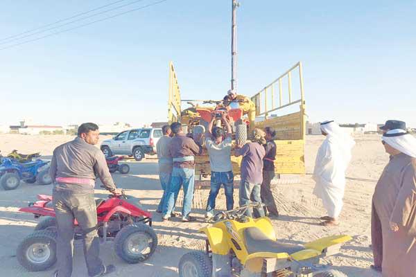 ميدانيا ومن قلب الحدث، قال رئيس فريق الطوارئ التابع لفرع بلدية محافظة الأحمدي مشعل أبا الصافي إنه تم الإعداد للحملة بتوجيهات من مساعد المدير العام لشؤون قطاع البلدية بمحافظتي الفروانية والأحمدي المهندس فيصل صادق، وبالتنسيق مع منسق لجنة إزالة التعديات العميد متقاعد صالح التويتان، ومدير الأمن بمديرية الأمن بمحافظة الأحمدي العميد علي المري، وذلك بهدف مواجهة ظاهرة تأجير "البقيات" في مناطق البر التي تقع في نطاق المحافظة. وأشار أبا الصافي إلى أن الظاهرة رُصدت في منطقة الهجن، وحُدد نهاية الأسبوع (الجمعة) لتنفيذ الحملة، وانطلق فريق العمل يرافقه رجال الأمن، وأثمرت تلك الجهود عن مصادرة 27 "بقي" وحجزها في منطقة الحجز بميناء عبدالله، وحجز رجال الأمن 3 أشخاص يؤجرون الدراجات النارية ولا يحملون أي إثباتات شخصية.