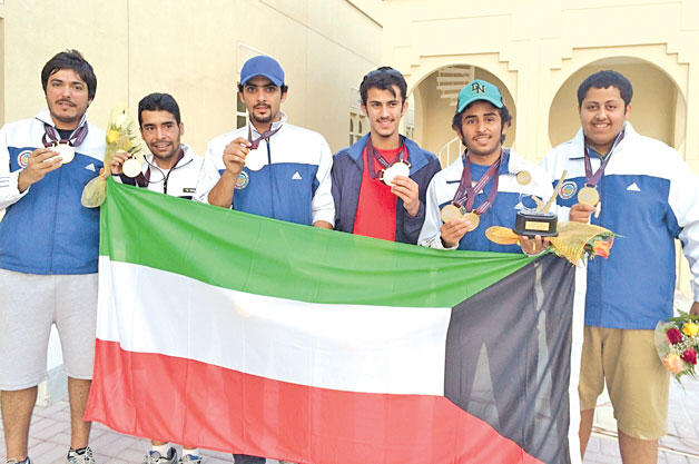 وفي منافسات اليوم الاخير تمكن الرماة ناصر المقلد وطلال الطرقي وعبدالرحمن الفيحان من انتزاع ذهبية منافسات تراب فرق، بينما أحرز الراميان خالد المضف وعبدالرحمن الفيحان ذهبية وفضية فردي تراب.كما حقق منتخب الكويت المكون من الرماة محمد الهاملي وناصر الخالدي وفارس المطيري ذهبية فرق الناشئين، في حين احرز محمد الهاملي ذهبية منافسات فردي الناشئين، وزميله ناصر الخالدي البرونزية.وقال رئيس اتحاد الرماية العربي رئيس الاتحاد الكويتي للرماية المهندس دعيج العتيبي، ان منتخب الكويت سيطر على نتائج الفرق والفردي ومسابقات الناشئين، وتمكن من اثبات تفوقه في العاب رماية التراب في جميع الفئات. وأشاد بتطور نتائج الرماة العرب بشكل عام ونتائج منتخبات الكويت، خصوصا الناشئين الذين يعتبرون مستقبل الرماية وتطورها في الكويت، مؤكدا تطلع المنتخب الى تحقيق مزيد من الانتصارات.من جهته، اشاد الامين العام للاتحادين الكويتي والعربي للرماية عبيد العصيمي في تصريح مماثل بحسن سير البطولة العربية للرماية في قطر، وبكل ما قدمته اللجنة المنظمة من تسهيلات لانجاح البطولة.من جانب آخر، قال العصيمي ان مجلس ادارة الاتحاد العربي للرماية عقد اجتماعا على هامش البطولة برئاسة رئيس الاتحاد العربي للرماية اعتمد خلاله اقامة البطولة المقبلة في مصر وبطولتين للخرطوش والرصاص في المغرب عام 2015.يذكر ان البطولة العربية للرماية انطلقت بالدوحة في العاشر من نوفمبر الجاري بمشاركة الكويت والسعودية وقطر والاردن ولبنان والمغرب والسودان والجزائر وتونس.(كونا)