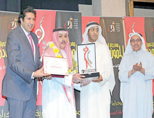 بعدها ألقى رئيس المهرجان جمال اللهو كلمة شكر من خلالها وزير الإعلام وزير الدولة لشؤون الشباب الشيخ سلمان الحمود على الدعم الكبير لإنجاح المهرجان، معلنا ان مهرجان الكويت للمونودراما بدورته الثالثة، التي ستنطلق عام 2016، «سيكون مهرجانا دوليا يعكس الصورة الحقيقية للريادة الفنية في دولتنا الحبيبة الكويت».ولد الديرةثم قدمت إدارة المهرجان درعا تكريمية للفنان ولد الديرة (خالد العقروقة)، الذي تسلمه بمعية المخرج خالد الراشد من الفنان المصري هاني رمزي. بدوره، قال ولد الديرة، الذي كان سعيدا ومتأثرا بهذا التكريم وبتصفيق ووقوف الجمهور، «شكراً لكم على هذه الالتفاتة الطيبة، شكرا وزير الإعلام، وم. علي اليوحة، ومحمد العسعوسي، وجمال اللهو».كلمة التحكيم بعد ذلك صعد إلى خشبة المسرح أعضاء لجنة التحكيم برئاسة المؤلف والمخرج بدر محارب، وعضوية د. سكينة مراد، والمخرج والمؤلف مساعد الزامل.وألقت د. مراد كلمة لجنة التحكيم، ثمنت فيها دور مؤسس ورئيس المهرجان جمال اللهو، مؤكدة أن المهرجان يعتبر امتدادا للمهرجانات المسرحية الأخرى في الكويت.ولفتت إلى أن المسرح تعبير إنساني، ومنبع للإبداع والحرية، ومن أكثر الفنون التصاقا بالجمهور بلقائه الحي، الذي يجمع كل الفنون والأشكال المتعددة، مشددة على ان المونودراما يعتبر أحد الفنون التي تقوم على الممثل الواحد، وهي أحد أشكال المسرح، ما دفع نقابة الفنانين إلى منح جائزتها لأفضل ممثل في العروض المحلية.وأوضحت أن أعضاء لجنة التحكيم وضعوا آلية لتقييم أداء الممثل ومهاراته، وفقا لمعايير عملية تتمثل في توظيفه لأدواته الصوتية والجسدية والتعبيرية وعلاقته بالفضاء المسرحي، وفقا لطبيعة الشخصيات الدرامية التي جسدها، متمنية أن تكون لجنة التحكيم قد وفقت في التقييم والاختيار.فوز ششتريوأعلن رئيس لجنة التحكيم المؤلف والمخرج بدر محارب أن جائزة الفنان أحمد الصالح لأفضل ممثل منحت للممثل علي ششتري عن دوره في مسرحية «ويبقى هو» لفرقة المسرح الشعبي، وتسلمتها بالإنابة عنه مؤلفة العرض دلال صقر من رئيس النقابة د. نبيل الفيلكاوي. وأخيرا أعلنت عريفة الحفل المذيعة ورود حيات عن منح الجامعة الأميركية في لندن الدكتوراه الفخرية لجمال اللهو، وصعد خشبة المسرح خالد الشمروخ رئيس جمعية العلاقات الدولية، وقدم الشهادة الفخرية لجمال اللهو.