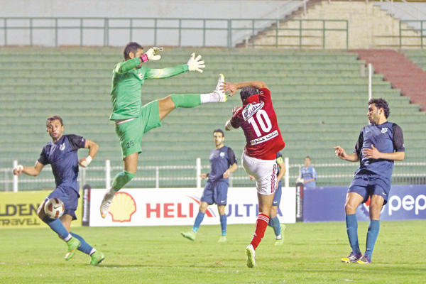 مباراة الأهلي ومضيفه إنبي، كانت تكتيكية ومليئة بالصدامات الفنية بين الإسباني غاريدو، وطارق العشري، المدير الفني لإنبي. وبدأ الأهلي المباراة بضغط هجومي من أجل إدراك هدف مبكر، ولكن استبسال دفاع إنبي حال دون ذلك. وانحصر الأداء في وسط الملعب بعيداً عن الفرص الحقيقية خلال الشوط الأول عدا فرصتين للأهلي عن طريق عماد متعب، الذي أهدر فرصة قريبة من تسديدة قوية إلى جانب انفراد لوليد سليمان ضاع بجوار القائم.ولم يتغير الأداء كثيراً في الشوط الثاني، فالأهلي سيطر على مجريات اللقاء مع مساحات محدودة تركها دفاع إنبي ورقابة لصيقة من جانب إبراهيم يحيى على عماد متعب بخلاف تألق صلاح سليمان أحد أفضل لاعبي المباراة بعد أن حد كثيراً من خطورة وليد سليمان.ولجأ إنبي للتغيير الأول بإشراك أحمد عبدالباسط «شرويدة» على حساب الغيني لاما كولين في الدقيقة 58 لتنشيط الهجوم، وألقى الأهلي بورقة هجومية بإشراك أحمد عبدالظاهر رأس الحربة على حساب إسلام رشدي لاعب الوسط، وفاجأ محمود قاعود الجميع بهدف في الدقيقة 75 بعد تمريرة متبادلة مع صلاح عاشور ليلدغ الأهلي، ودفع الأهلي بالثنائي النيجيري بيتر إيبيمبوي ورمضان صبحي في الدقائق الأخيرة على حساب محمود تريزيغيه وحسام عاشور بغية التعادل.ومرت الدقائق الأخيرة بدون خطورة حقيقية على مرمى الأهلي، مع حالة من العصبية للاعبي الفريق الأحمر وتألق لعبدالمنصف ودفاع إنبي في إبعاد الفرص المؤثرة التي سنحت للفريق ليخرج الأهلي بهزيمة جديدة.