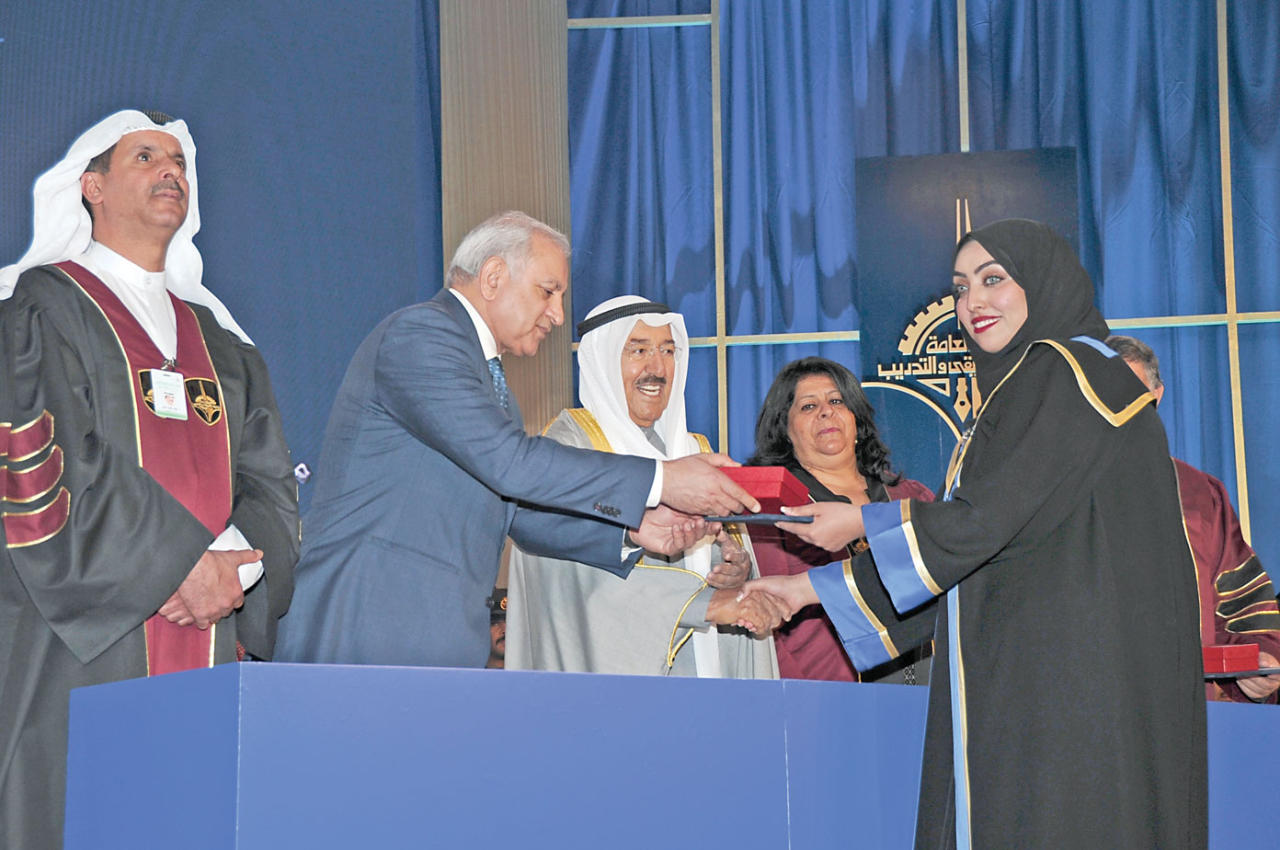 برعاية وحضور سمو أمير البلاد الشيخ صباح الأحمد، كرمت "التطبيقي" كوكبة من أوائل خريجيها للعام الدراسي 2013-2014 أمس، على مسرح كلية التربية الأساسية "بنات".