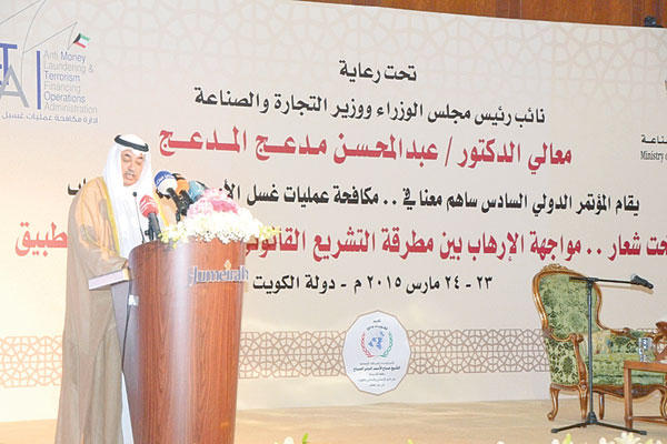 وقالت مصادر مطلعة إن «مفوضي الهيئة أكدوا، في الاجتماع، أنه لا تعسف لدى الهيئة تجاه أي طرف، وأن أحكام الاستئناف أسست النصوص ودستوريتها».وذكرت المصادر لـ»الجريدة» أن «التذرع بأن النصوص الحالية فضفاضة أمر غير سليم، ولا حاجة إلى تعديلات تفرغ الهيئة من محتواها»، مشددة على حرص مجلس الوزراء على أن تظل الهيئة ذات صلاحيات أساسية في تنظيم عمل السوق وردع المخالفين. من جهته، شدد نائب رئيس مجلس الوزراء وزير التجارة والصناعة د. عبدالمحسن المدعج، خلال المؤتمر الدولي السادس «ساهم معنا في مكافحة عمليات غسل الأموال وتمويل الإرهاب»، أمس، على تمسك الحكومة بمبدأ تشديد المراقبة من خلال الهيئات الرقابية، ومن خلال الجزاءات التي تتناسب مع الجرم، وسعيها إلى حماية صغار المستثمرين.وأوضح المدعج أن «النواب تطرقوا إلى المادة 122 بشكل رئيسي في تعديلاتهم، وهي في الوقت نفسه منظورة الآن في المحكمة الدستورية، لأن هناك قضايا كثيرة مرفوعة بشأنها».المدعج: ماضون في مكافحة غسل الأموال وتمويل الإرهاب