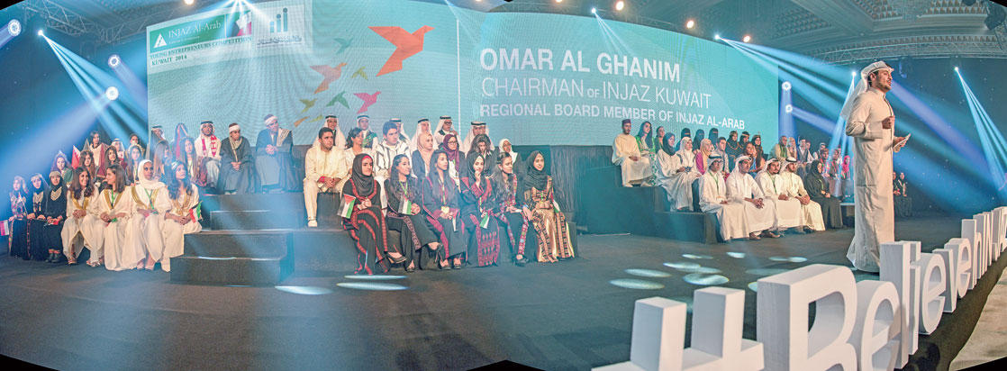 عمر الغانم: اليوم يحصد الشباب المشاركون ثمرة جهود 12 شهراًبرعاية سمو الأمير الشيخ صباح الأحمد اختتمت مؤسسة إنجاز العرب فعاليات مسابقة إنجاز العرب للشباب رائدي الأعمال لعام 2014، التي أقيمت في فندق كويت ريجنسي مساء أمس الأول، وتلاها حفل توزيع الجوائز على الطلبة الفائزين بالمسابقة، بناء على ما حققته شركاتهم من نتائج وإنجازات مميزة.أكد وزير الدولة لشؤون مجلس الامة الشيخ محمد العبدالله أن استضافة الكويت للاحتفال الثامن لمؤسسة انجاز العرب بتوزيع جوائز المؤسسة للشباب رائدي الاعمال لعام 2014، بالتعاون مع وزارة الدولة لشؤون الشباب، والذي يقام للعام الثاني على التوالي تحت رعاية سمو امير البلاد الشيخ صباح الاحمد، قائد العمل الانساني، تأتي تأكيداً لإيمان سموه بأهمية قطاع الشباب في صنع حاضر ومستقبل الامم والشعوب.وقال العبدالله، في كلمة له خلال حضوره حفل اختتام «مسابقة إنجاز العرب للشباب رائدي الأعمال 2014»، الذي اقيم في فندق كويت ريجنسي مساء أمس الأول، وتلاه حفل توزيع الجوائز على الطلبة الفائزين بالمسابقة، بحضور وكيلة وزارة الدولة لشؤون الشباب الشيخة الزين الصباح، والرئيس التنفيذي لمجموعة صناعات الغانم رئيس مجلس إدارة إنجاز الكويت العضو في مجلس إدارة مؤسسة إنجاز العرب عمر الغانم، وعدد من الشخصيات مساء أمس الاول، إن «ترسيخ ثقافة الريادة ونشرها بين قطاعات الشباب في الوطن العربي، والتي تتبناها مؤسسة انجاز العرب منذ تأسيسها عام 1999 من خلال المنظومات التعليمية المتنوعة، يمثل تحديا حقيقيا لولوج قمة التطور والنماء في كل مجالات الحياة، واعتمادا على القوى الشبابية ودورها المأمول في منظومة التنمية لمواكبة دول عالمنا العربي وركب الحضارة والتطور العالمي».واضاف ان الرؤية الشاملة التي يرتكز عليها التعاون الجاد والمثمر بين وزارة الدولة لشؤون الشباب ومؤسسة انجاز العرب تعمل على افساح المجال امام الابداعات الخلاقة لمواهب الشباب وقدراتهم التي لم تستثمر بعد في كل مجالات الاعمال، بما يكفل تحديد عوامل ومواطن نجاح حقيقية تساعد على اكتشاف فرص عمل جديدة لتساهم في تنوع وتطوير مداخيل الاقتصادات الوطنية الذي يمثل مطلبا عربيا راهنا.رعاية ودعمواكد العبدالله ان القيادة السياسية العليا، وعلى رأسها سمو الامير الشيخ صباح الاحمد، وسمو ولي العهد الشيخ نواف الاحمد، ورئيس مجلس الوزراء سمو الشيخ جابر المبارك، تولي شباب الكويت كل اشكال الرعاية والدعم، باعتبارهم شركاء اساسيين في منظومة تطوير وتنمية البلاد، وهو ما كان من نتائجه إنشاء وزارة دولة للشباب بالكويت لاول مرة في تاريخ تشكيل الحكومات الكويتية، ما يمثل تعبيرا حقيقيا عن عمق وصدق الايمان بأهمية الشباب ودورهم في بناء الوطن واستقراره.واردف ان من اولويات وزارة الدولة لشؤون الشباب دعم مبادرات الشباب لما يمثلونه من ثروة حقيقية تستحق كل الدعم والتشجيع من خلال تعزيز الشراكة بين الوزارة وكل المؤسسات داخل وخارج الكويت، بهدف تشجيع الشباب على استثمار وقت فراغهم لما يعود بالنفع والفائدة على المجتمع، واحتضانها المشاريع المبتكرة والابداعية، وتقديم كل اشكال الدعم المادي واللوجستي والاعلامي للشباب المبادرين والمبدعين لدفع مهاراتهم وصقل مواهبهم في شتى المجالات.حقيقة تاريخيةوشدد العبدالله على أن دور الشباب في صنع الحضارة الإنسانية يؤكد أن الاستثمار في الإنسان، خصوصاً القطاعات الشبابية، يمثل الملاذ الآمن للامم والشعوب في التنمية والتطور، والأمن والاستقرار والرخاء، والتنمية المستدامة، قائلاً: «انطلاقاً من هذه الحقيقة التاريخية قامت وزارة الدولة لشؤون الشباب بإطلاق واحتضان ودعم عشرات المبادرات من خلال استراتيجية دعم المشروعات الصغيرة والمتوسطة، وإنشاء موقع الكتروني لاستقبال طلبات الشباب الراغبين في دعم المبادرات والمشاريع الشبابية، في خطوة أساسية لتعزيز دور الشباب الإيجابي في المجتمع وتطوير مهاراتهم وإبداعاتهم المختلفة».وأضاف 