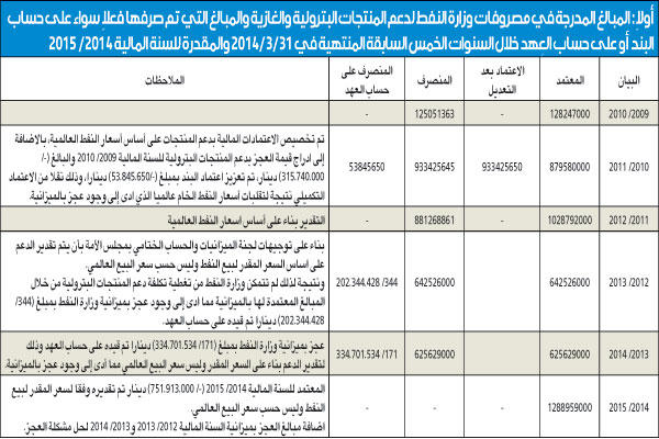 • أرجع سبب العجز إلى تقدير الدعم على السعر المقدر لا العالمي بناء على طلب «الميزانيات»• تجاوز اعتماد الميزانية لعدم توفر وقت كاف لإجراءات إصدار اعتماد إضافي