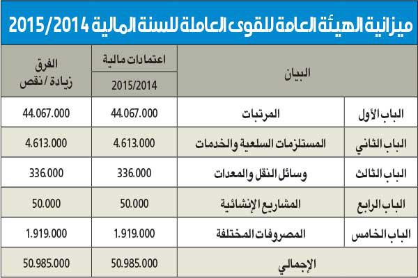 ميزانية هيئة القوى العاملة... 50 مليون دينار مصروفات