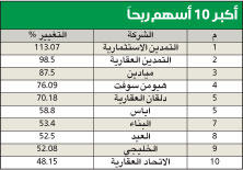 «التمدين الاستثمارية» و«التمدين العقارية» أكثر الأسهم ربحية