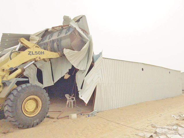أعلنت إدارة العلاقات العامة بالبلدية إزالة عدد من التجاوزات والمخالفات من منطقة كبد، خلال الحملات التي نفذتها إدارة الخدمات العامة بالبلدية بالتعاون مع فريق الطوارئ بفرع بلدية الجهراء، بمساندة أمنية من مديرية أمن المحافظة، وشملaت الخيام وغرف الكيربي المقامة دون ترخيص وتستخدم في إقامة المزادات.وأشارت الإدارة إلى أن هذه الحملات تأتي في سياق التوجيهات التي أطلقتها الإدارة العليا بالبلدية لتطبيق الأنظمة والقوانين على المخالفين في مختلف المحافظات، وتوجيه جهود الأجهزة الرقابية المختلفة للمحافظة على المنظر العام.