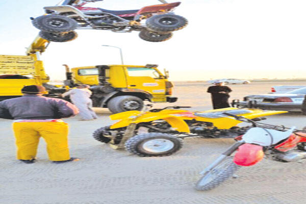 نفذت قوة تابعة لمديرية أمن محافظة الأحمدي، بمشاركة بلدية المحافظة حملة أمنية لضبط الدراجات الآلية غير المرخصة الموجودة على طريق المخيمات، بعد تلقي عدد كبير من بلاغات الإصابات الجسيمة وإحداث الضرر بمرتادي المخيمات.