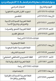 تأكيدا لما نشرته «الجريدة» في عدد سابق، اعتمدت وزارة التربية أمس تقديم موعد اختبارات الدور الثاني للمرحلتين الابتدائية والمتوسطة لتكون خلال الفترة من 10 إلى 17 يونيو المقبل، كما تم تقديم موعد العطلة الصيفية للهيئات التعليمية والإدارية في المرحلتين لتبدأ 23 يونيو المقبل.وفي هذا السياق، قال الوكيل المساعد للتعليم العام في وزارة التربية د. خالد الرشيد في تصريح للصحافيين امس، عقب ترؤسه اجتماع مجلس مديري عموم المناطق التعليمية بحضور مديري العموم، ومدير مكتب التنسيق ومتابعة التعليم العام، إن الاجتماع تخلله مناقشة الإجراءات التي اتخذتها المناطق التعليمية للعام الدراسي المقبل 2015 / 2016 وتحريك عقود الصيانة اللازم توقيعها ومناقشة آلية تنفيذ اللوائح الخاصة بالدور الثاني.