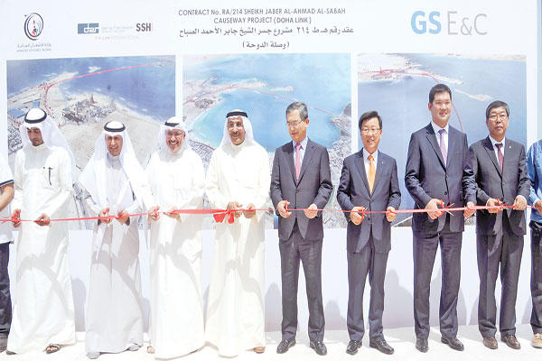 وأشار إلى أن الجسر يتكون من 3 حارات، وحارة طوارئ بكل اتجاه، وأعلى ارتفاع لهذا الجسر فوق سطح الماء يبلغ حوالي 12 مترا، وتتباعد المسافات بين أعمدة الجسر ما بين 40 و60 مترا.مشروع مكملوتابع: وتعد وصلة الدوحة مشروعا مكملا لمشروع جسر الشيخ جابر الأحمد، وتم توقيع عقد المشروع مع شركة «جي إس» الكورية المتخصصة في إنشاء الجسور، بتكلفة بلغت 165 مليونا و708 آلاف دينار، وسيتم تنفيذه خلال 4 سنوات، على أن يكون تاريخ التسليم التعاقدي نهاية عام 2018.وأضاف: يساهم المشروع في ربط شبكة الطرق الجنوبية بالشمالية من خلال ربط ميناء الشويخ والمنطقة الحرة مباشرة بميناء الدوحة وطريق الجهراء، ما يخفف العبء على شبكة الطرق الداخلية، ويساعد في انسيابية المرور. وبيّن الوزير أن وصلة الدوحة تتضمن تقاطعين جديدين؛ هما تقاطع الدوحة وتقاطع المدينة الترفيهية، وسيتم ربط تلك الوصلة مباشرة بتقاطع ميناء الشويخ الجاري إنشاؤه ضمن مشروع جسر جابر، إضافة إلى 3 مبان حكومية للخدمات ومحطة وزن للشاحنات ونظام مراقبة وتحكّم مروري مربوط بالنظام المركزي ونظام مراقبة «scada» شامل لهيكل الجسر وخدماته.40 مشروعاًمن جانبه، قدّم وكيل وزارة الأشغال بالإنابة، م. أحمد الحصان، الشكر للوزير الجسار لتشريفه بوضع حجر الأساس لمشروع جسر الشيخ جابر (وصلة الدوحة)، الذي بدأ فعليا أمر المباشرة فيه في نهاية ديسمبر من العام الماضي.وأضاف الحصان، في تصريح صحافي على هامش الاحتفال: يأتي هذا المشروع مكملا لخطة وزارة الأشغال/ قطاع هندسة الطرق، في إنجاز كافة المشاريع الخاصة بتطوير الحركة المرورية في دولة الكويت، لافتا إلى أن الوزارة لديها خطة طموحة جدا بها قرابة 40 مشروعا.وقال: لدينا كذلك المناقصات التي طرحت سابقا، والمشاريع التي يتم تنفيذها حاليا، ومن أهم المشاريع التي طرحتها لجنة المناقصات المركزية الطرق الرابطة بمدينة صباح الأحمد والخيران ومدينة الوفرة، وتطوير مشروع طريق النويصيب، مبينا أن من مشاريع الطرق المهمة كذلك تطوير شارع القاهرة، إضافة إلى بعض المشاريع الحيوية الحساسة المرتبطة بتطوير طريق الدائري السابع، وطريق السالمي.وأشار إلى أن الخطة التي وضعت لن تربط فقط المدن القائمة مثل مدينة صباح الأحمد وجابر الأحمد وسعد العبدالله، إنما هي خطة شاملة تربط الطرق الرئيسية والإقليمية داخل الكويت، وفي الجنوب والغرب، وهي جاهزة لاستقبال المدن المستقبلية، وهناك تقاطعات جسور لسلامة وأمن الحركة المرورية، إضافة إلى ذلك ستكون هناك مناقصات ستطرح تباعا في شمال الكويت بمدينة المطلاع، إضافة إلى الطرق الرابطة شمال الكويت مع طريق العبدلي ومدينة الحرير مستقبلا، وصولا إلى جزيرة بوبيان، إضافة إلى تطوير طريق العبدلي القائم.