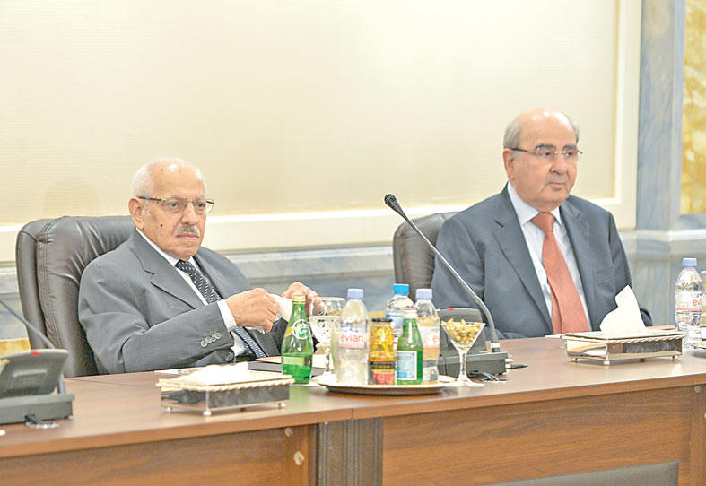 د. مصطفى البرغوثي وعن الملف اللبناني فؤاد السنيورة.الموقف الأميركيولفت الصقر الى أن "مجلس الأمناء لم يخرج بأي توصيات حتى الآن، وسيتم الإعلان عن أي توصيات فور صدورها من المجلس أو تفويضي بذلك".وأشار الى أن المجلس ناقش وضع "داعش" في المنطقة، وخصوصا في العراق وسورية والموقفين الأميركي والتركي، مشددا على أن هناك اقتراحات واتصالات مع روسيا الاتحادية، وترتيبات للقاء الرئيس الروسي فلاديمير بوتين والرئيس التركي رجب طيب أردوغان، لأنه من الواضح أن تركيا لديها طلبات تريد إسقاط النظام السوري، وفرض منطقة عازلة، وحظر الطيران، والأميركان مختلفون معها في هذا الموضوع.وأوضح أن هناك وجهات نظر تؤيد الموقف التركي، وتركيا علاقاتها سيئة مع مصر، وتركيا وروسيا دولتان أساسيتان، ونحن نحاول تقريب وجهات النظر العربية - الروسية - التركية.وكشف أن هناك دعوة لمجلس العلاقات العربية والدولية لزيارة المملكة العربية السعودية.وتابع الصقر: "اليوم (أمس) تشرفنا بلقاء سمو أمير البلاد، ولا أستطيع أن أتحدث باسم سموه، حيث تكلم سموه كلاما طيبا عن موقف الكويت والخليج من مختلف القضايا الدولية والإقليمية.ولفت الى أن مجلس العلاقات لديه اتصالات مع 6 منظمات عالمية، هي مؤسسات مجتمع مدني في الصين وروسيا وأميركا والمملكة المتحدة، بهدف تبادل المعلومات وإقامة الندوات والدراسات وتحليل الأوضاع. مجتمع مدنيوعن إمكان تطبيق توصيات مجلس العلاقات على أرض الواقع، قال الصقر إن "المجلس لا يملك قوة لتطبيق قراراته، لأنه مؤسسة مجتمع مدني تعنى بالسياسة الخارجية، ونحن نستطيع أن نبذل الجهود لتقريب وجهات النظر وإعطاء النصائح وإقامة الندوات، لكن قراراتنا ليست ملزمة".وتابع "وهذه المؤسسة هي الوحيدة في العالم العربي التي تهدف الى تقريب وجهات النظر بين الأطراف المتخاصمة في الوطن العربي، وإبراز وجهات النظر الشعبية في الخارج".وعن مشاركة رئيس الوزراء وزير الخارجية القطري السابق، حمد بن جاسم، في الاجتماع، وهل هدف الاجتماع الى تقريب وجهات النظر المصرية - القطرية، قال الصقر إن الشيخ حمد بن جاسم كان عضوا في المجلس منذ تأسيسه، لكن عضويته كانت مجمدة بسبب رئاسته لمجلس الوزراء ووزارة الخارجية في قطر وانشغاله بذلك، الى أن استقال، ولكنه لم يحضر الاجتماعين الماضيين بسبب انشغاله".وتابع الصقر "أما في ما يخص مصر، فقد ذهبنا كوفد ممثل لمجلس الأمانة أنا ود. أياد علاوي ودولة الرئيس فؤاد السنيورة الى القاهرة في شهر رمضان الماضي، والتقينا الرئيس المصري عبدالفتاح السيسي، وتحدثنا، وهناك كلام قيل خلف الجدران المغلقة، وأنا لا أستطيع أن أعلنه، ونحن ندعم الحكومة المصرية، فمصر جزء مهم وأساسي، بل من أهم الدول في العالم العربي، ونريد دعم هذا التوجه، ونقرب وجهات نظرها مع من تختلف معهم في العالم العربي".المبارك يستقبل أمناء «العلاقات العربية والدولية»استقبل رئيس مجلس الوزراء سمو الشيخ الجابر المبارك في قصر بيان أمس رئيس مجلس العلاقات العربية والدولية محمد جاسم الصقر وأعضاء المجلس، وذلك بمناسبة انعقاد الاجتماع الرابع لمجلس الأمناء بدولة الكويت.حضر المقابلة الوكيل المساعد للشؤون المحلية بديوان سمو رئيس مجلس الوزراء الشيخ خالد محمد الخالد.