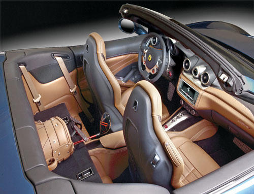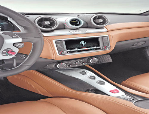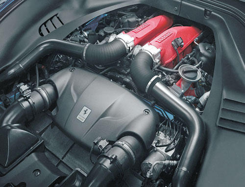 ويضم هذا الطراز مجموعة من الحلول الجديدة، ولاسيما محرك التوربو بـ8 أسطوانات، حيث ابتكر مهندسو مارانيلو وحدة طاقة جديدة كلياً توفر مستويات خارقة من الأداء، وقدرة تسارع مذهلة وصوت جبار لم يسبق له مثيل في محركات التوربو.محرك توربوكما أن هذه المرة الأولى التي يتم تحقيق استجابة مباشرة للتوربو دون أي تأخير عمليا على محرك من هذا النوع، مما يضمن تجاوبا فوريا مع إدخالات السائق، إضافة إلى منحنى عزم الدوران الذي يرتفع باستمرار على كامل نطاق دورات المحرك، كما هي حال وحدات الطاقة التي تعمل بالاستنشاق الطبيعي، وذلك بفضل نظام إدارة التسارع المتغير Variable Boost) Management).وتم تثبيت محرك التوربو بثماني إسطوانات سعة 5538 سنتيمترا مكعبا، والذي يعمل بتقنية الحقن المباشر، عند مستوى منخفض جداً في هيكل السيارة وبموضع وسطي- أمامي، وهو يولد قوة 560 حصانا عند 7500 دورة في الدقيقة، مما يؤدي إلى توليد طاقة محددة تبلغ 145 حصانا/ لتر - الأعلى في هذه الفئة – فضلا عن عزم دوران أقصى يبلغ 755 نيوتن/ متر.وهذه الأرقام تمنح طراز "كاليفورنيا تي" قدرة تسارع استثنائية من 0 إلى 100 كلم / ساعة خلال 3.6 ثوان فقط.ويستخدم التوربو، كما في سباقات الفورمولا واحد، بهدف تقليص معدل استهلاك الوقود وانبعاثات ثاني أكسيد الكربون. بالمقارنة مع الطراز السابق، انخفض معدل استهلاك الوقود حول نسبة 15 في المئة، على الرغم من تعزيز القوة بواقع 70 حصانا وعزم الدوران بنسبة 49 في المئة.كذلك انخفضت الانبعاثات إلى 250 غراما / كلم على الدورة الكاملة، ما يعادل انخفاضا بنسبة 20 في المئة في معدل انبعاثات ثاني أكسيد الكربون لكل الحصان (البالغ 0.44 غرام / حصان). كما يستفيد محرك "كاليفورنيا تي" من مجموعة حلول أخرى مستخدمة في السيارات أحادية المقاعد، ولاسيما التوربينات ثنائية المسارب بمستوى قصور ذاتي منخفض جدا، والتي تضمن استجابة عالية السرعة لمدخلات دواسة الوقود. وتتم الاستعانة بمنهجيات ومصنع سكوديريا في مراحل معينة من إنتاجها، خصوصا في مرحلة الصب.صوت يليق بالعلامةويعد أحد التحديات الرئيسية التي واجهها المهندسون خلال تصميم طراز "كاليفورنيا تي" ضمان صوت محرك يليق بعلامة فيراري ويزيد حدة القوة والإثارة. وتحقق ذلك من خلال أعمال التصميم الدقيقة واستخدام تقنيات تصنيع خاصة للمكونات الأساسية، مثل العمود المرفقي المسطح ومشعب العادم المؤلف وعلبة التوربو المصنوعة من ثلاث قطع مصبوبة. ويولد المحرك صوت قوي ومثير أثناء مرحلتي السحب والتصريف، يزداد دويه مع زيادة سرعة المحرك. وتعد هذه المرة الأولى على الإطلاق التي يتم فيها التوصل إلى نتيجة من هذا النوع مع محرك توربو.ويتمتع طراز "كاليفورنيا تي" كذلك بدينامية السيارات الرياضية الحقيقية، نظرا لتخفيض نطاق دوران عجلة القيادة وتحسين استجابة التوجيه لمدخلات السائق، وذلك بفضل التصميم الجديد لعلبة المقود ونظام التعليق. وتساهم النوابض الجديدة وأحدث جيل من مخمدات ماغنيرايد (التي تستجيب 50 في المئة أسرع)، إلى جانب مقاييس التسارع لحركة الهيكل، في الحد من الاهتزازات الأفقية والعمودية لتحكم أكثر دقة مع ضمان قيادة مريحة إلى أقصى الحدود.كما تضم "كاليفورنيا تي" أحدث جيل من نظام F1 –Trac للتحكم بالجر لتعزيز الانطلاقة من المنعطفات، ما يؤكد الجانب الرياضي من شخصية السيارة. وتضمن هندسة وأنظمة تحكم "كاليفورنيا تي" إلى جانب المحرك الجديد بثماني أسطوانات متعة قيادة فائقة في ظروف القيادة الصعبة، كما توفر تجربة ممتعة للقيادة المسترخية، وهو أمر يتماشى مع تقاليد سيارات جي تي. أما نظام المكابح المصنوعة من الكربون والسيراميك CCM3 فهو أيضاً فعال للغاية مع أقراص ومنصات مركبة جديدة. وتم ربط نظام الكبح بنظام ESP 8.0 الاستثنائي للتحكم بالثبات الذي يسيطر على الأداء العالي لنظام ABS لتحقيق مسافة كبح قصيرة من 100- 0 كم / الساعة تبلغ 34 مترا فقط.شخصية جديدةوأولي اهتمام كبير لتصميم "كاليفورنيا تي" الذي يحافظ على أبعاد الطراز القديم بشكل عام، مع ضمان شخصية جديدة 