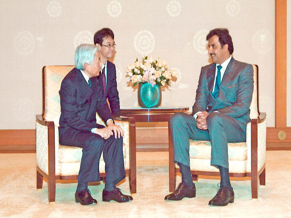 استعرض أمير دولة قطر الشيخ تميم بن حمد آل ثاني مع امبراطور اليابان أكيهيتو في طوكيو أمس العلاقات الثنائية بين البلدين الصديقين.