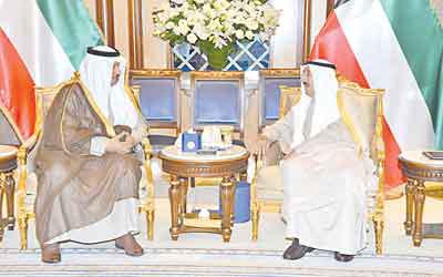 استقبل سمو أمير البلاد الشيخ صباح الأحمد بقصر بيان ظهر أمس، سمو ولي العهد الشيخ نواف الأحمد.