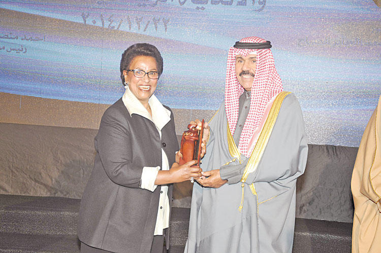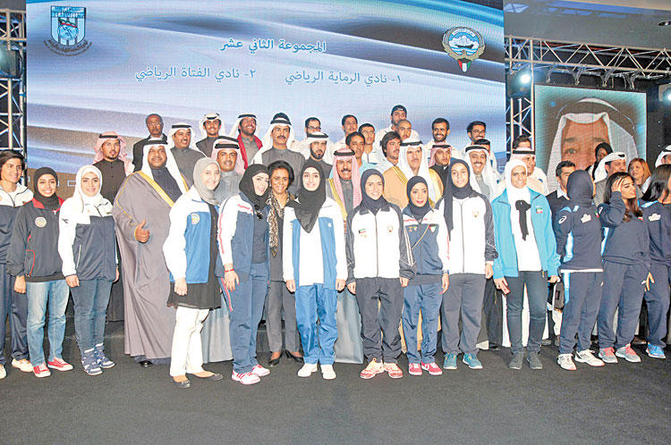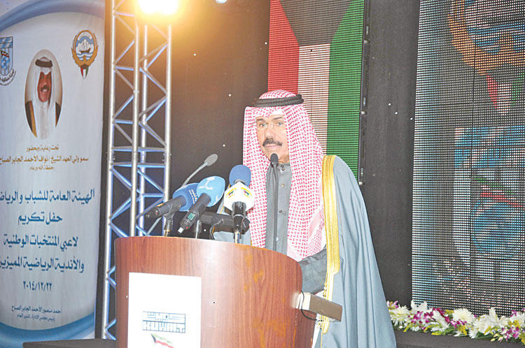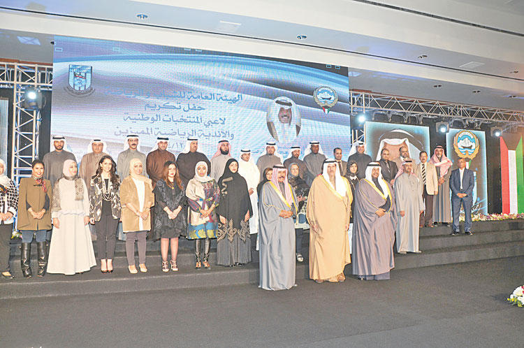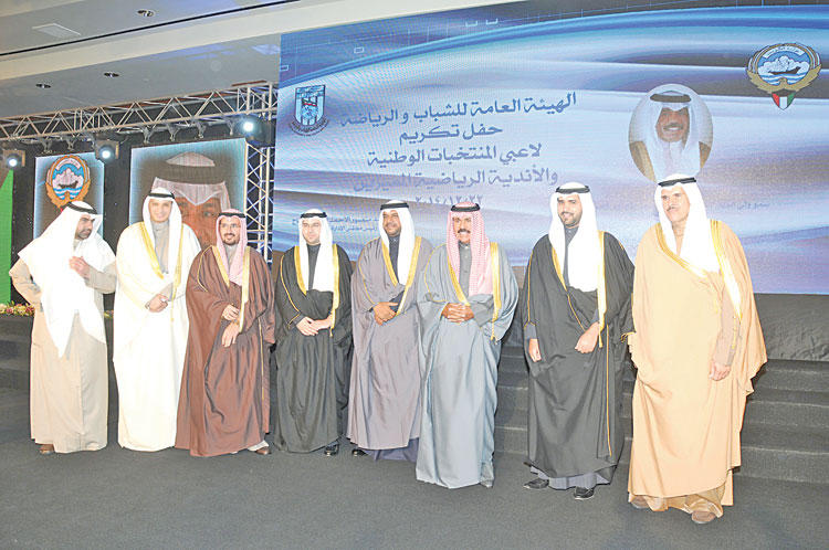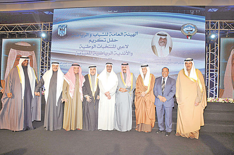 تفضّل سمو ولي العهد الشيخ نواف الأحمد، فشمل برعايته وحضوره صباح أمس حفل تكريم لاعبي المنتخبات الوطنية والأندية الرياضية المتميزين، الذي تنظمه الهيئة العامة للشباب والرياضة في فندق الجميرا (قاعة بدرية) بمنطقة المسيلة.ووصل موكب سموه إلى مكان الحفل، وكان في مقدمة مستقبليه وزير الإعلام وزير الدولة لشؤون الشباب الشيخ سلمان الحمود، ورئيس مجلس الإدارة المدير العام للهيئة العامة للشباب والرياضة الشيخ أحمد المنصور، ونائبه لشؤون الرياضة ورئيس اللجنة العليا المنظمة للحفل أحمد الخزعل، وكبار القياديين والمسؤولين بالهيئة، وأعضاء اللجنة العليا المنظمة للحفل.